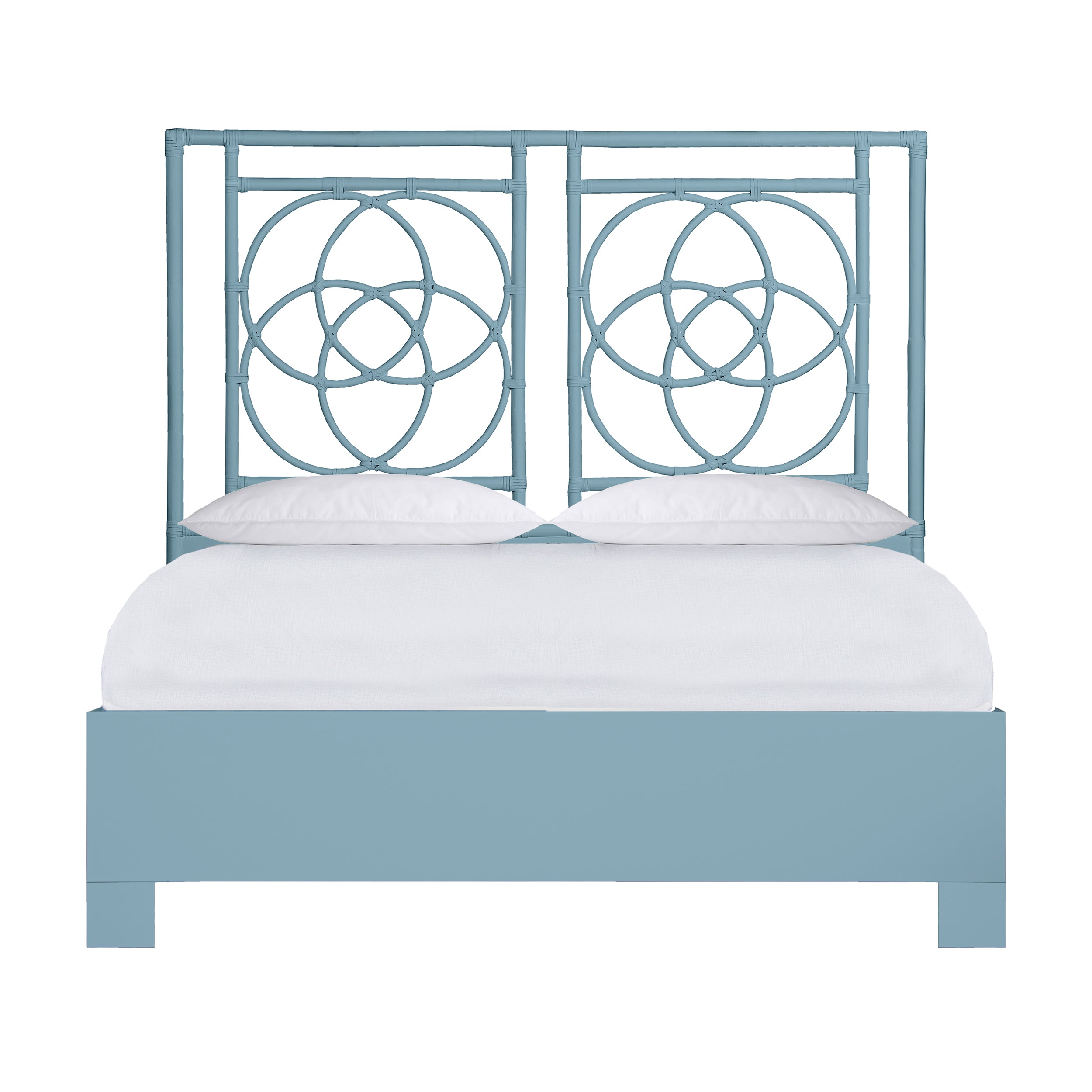 This bed features a Rattan headboard with a Maple Bed Frame. The Rattan headboard is wrapped with Leather Bindings to add beautiful contrast and strength. The Maple Bed Frame is available as a Standard bed frame, to accept a mattress and box spring, or as a Platform style bed, which accepts a mattress only. There are 3 bed leg styles to select from - squared, tapered, and curved. The headboard easily attaches to the bed frame. Each bed is custom-made and finished to order in the USA. This bed is an artistic centerpiece and will make a statement in any room. Constructed by master craftsmen and easily assembled, this bed is built to last.