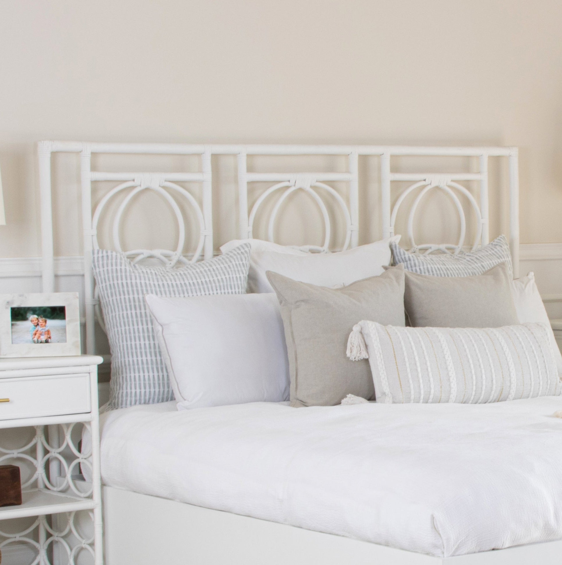 Rattan and wood headboard