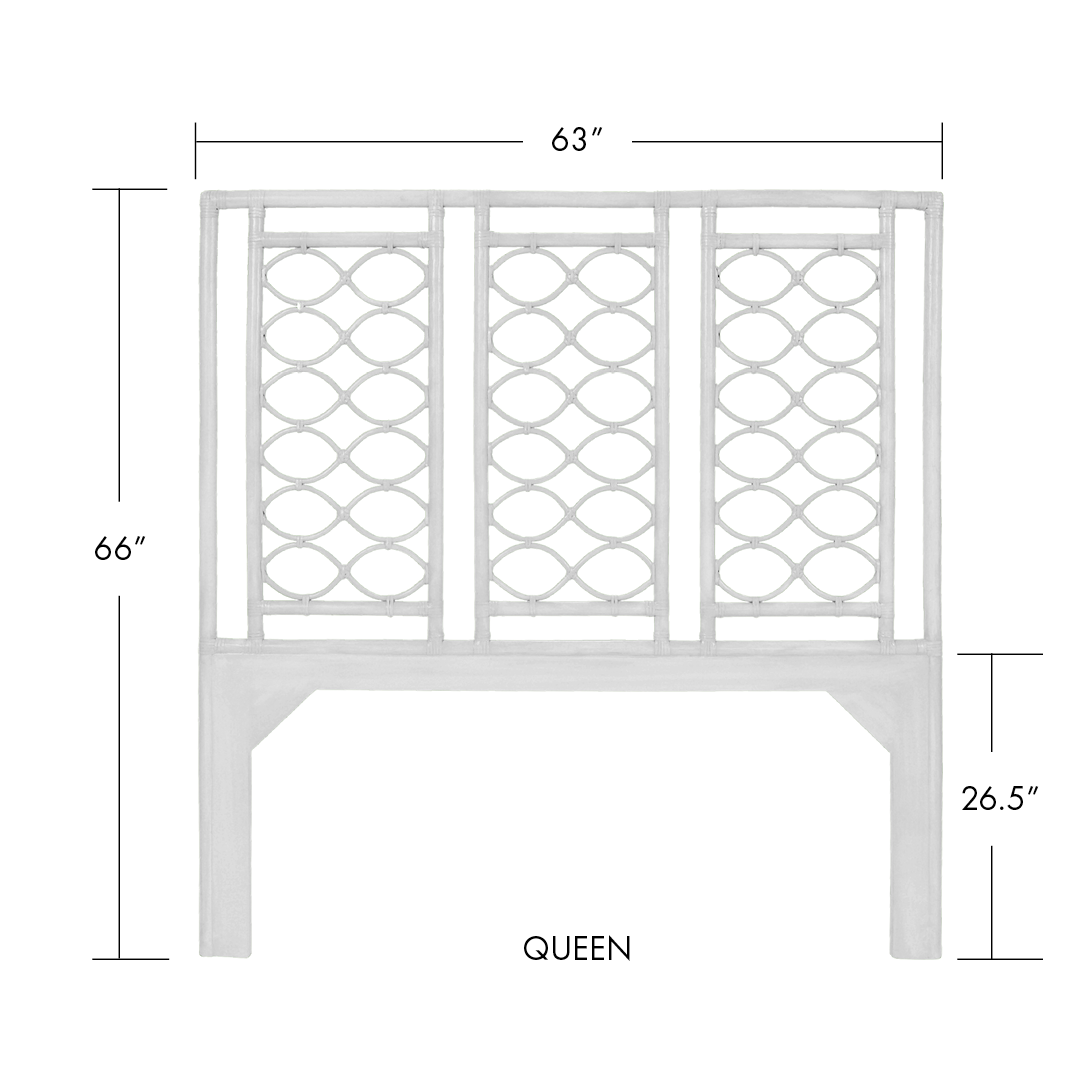 Queen: W63" x H66" floor to bottom of first rattan pole: 26.5"