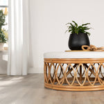 This luxurious Lillian Cocktail Ottoman adds a touch of art and sophistication to any space. The sustainably handcrafted rattan frame, available in a variety of finishes, exudes elegance and exclusivity. The customizable seat, available in both COM and performance fabrics, promises comfort and style.
