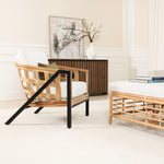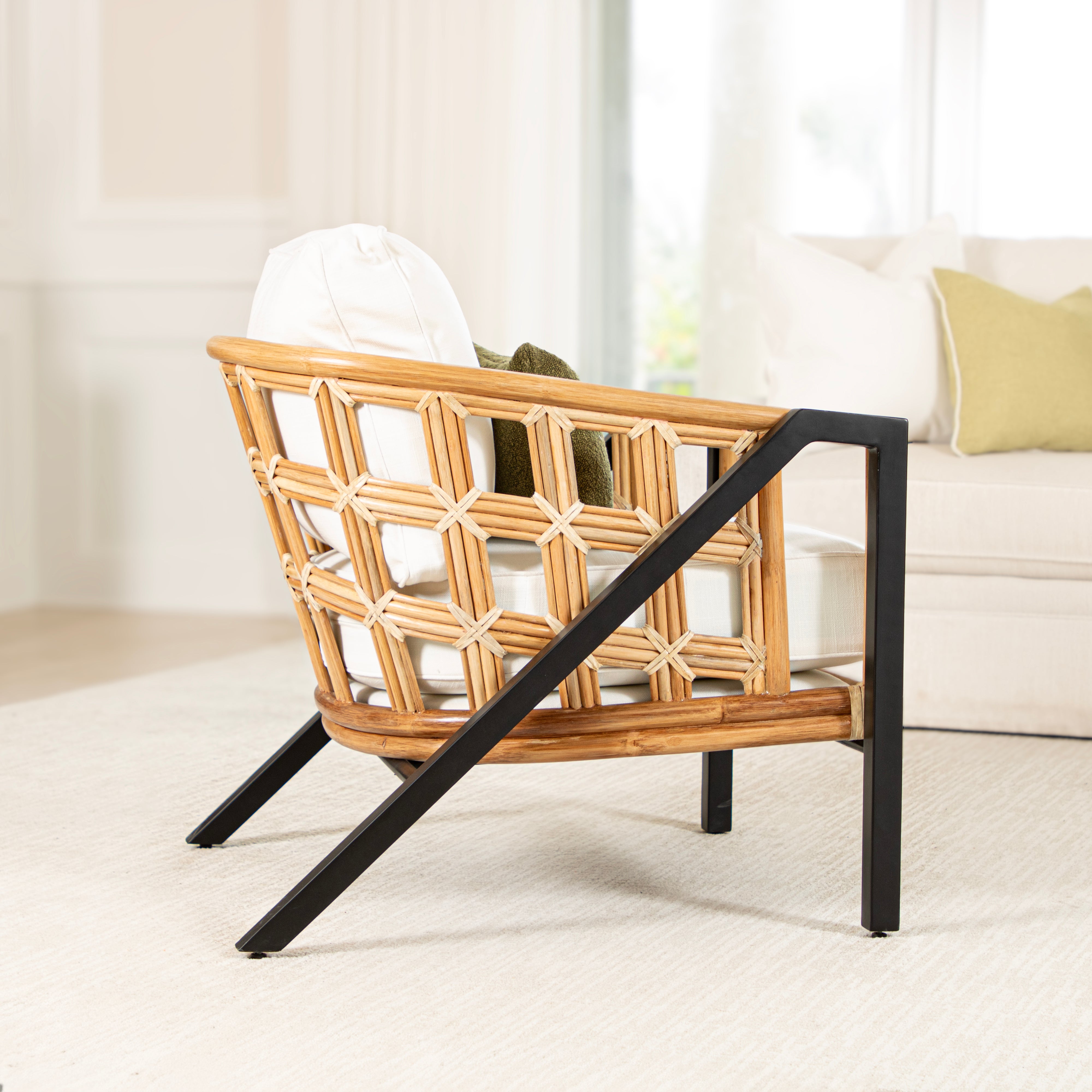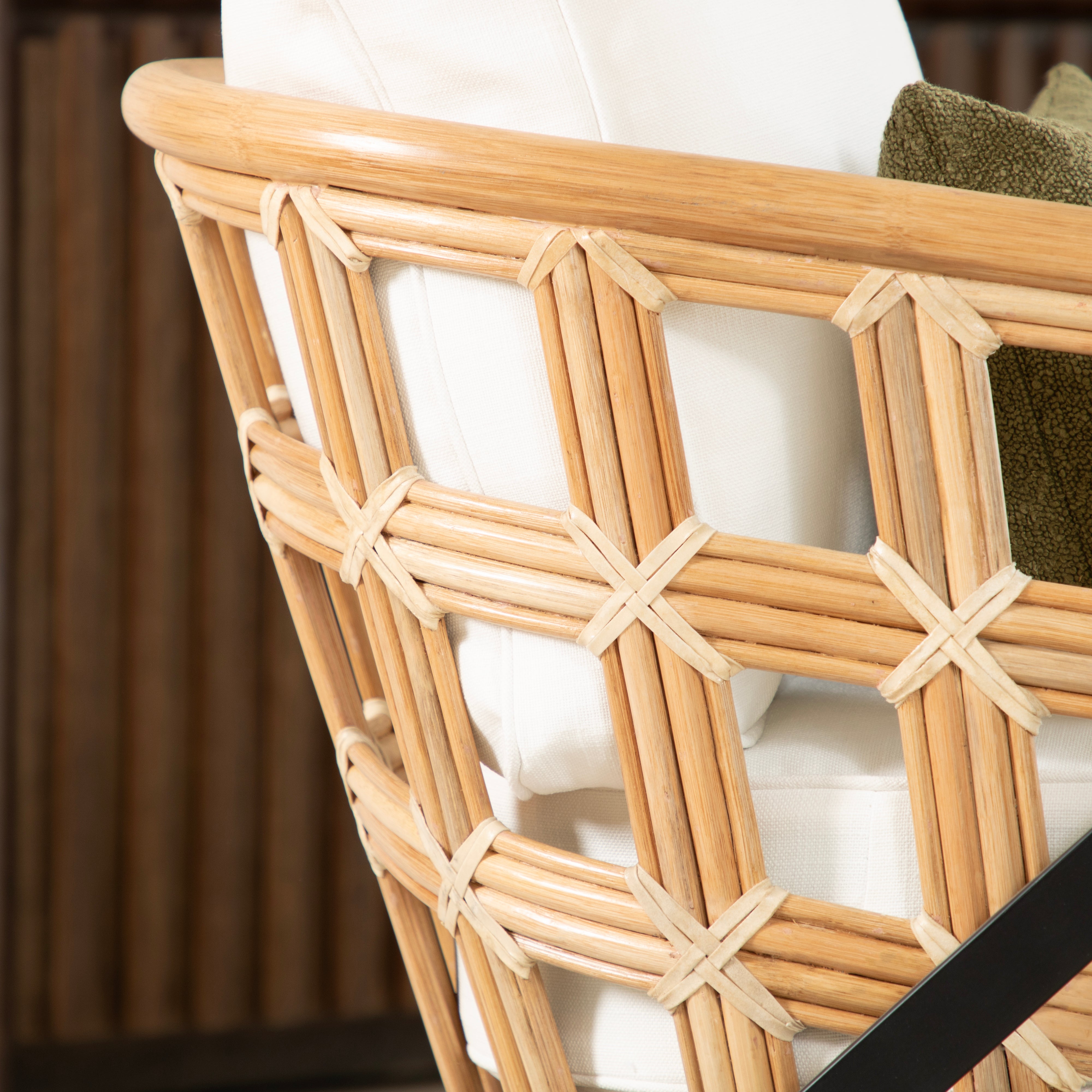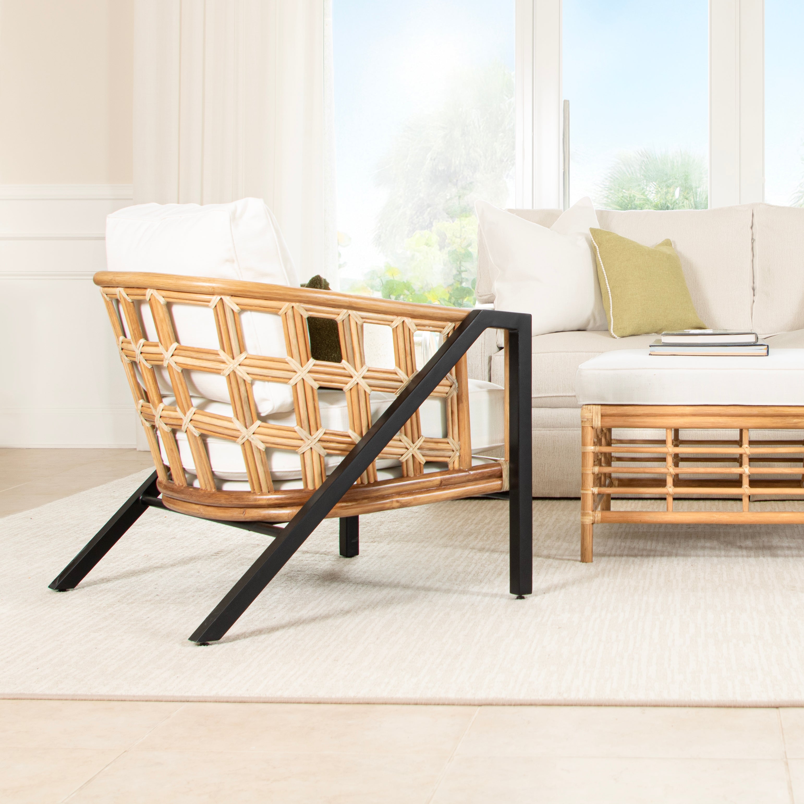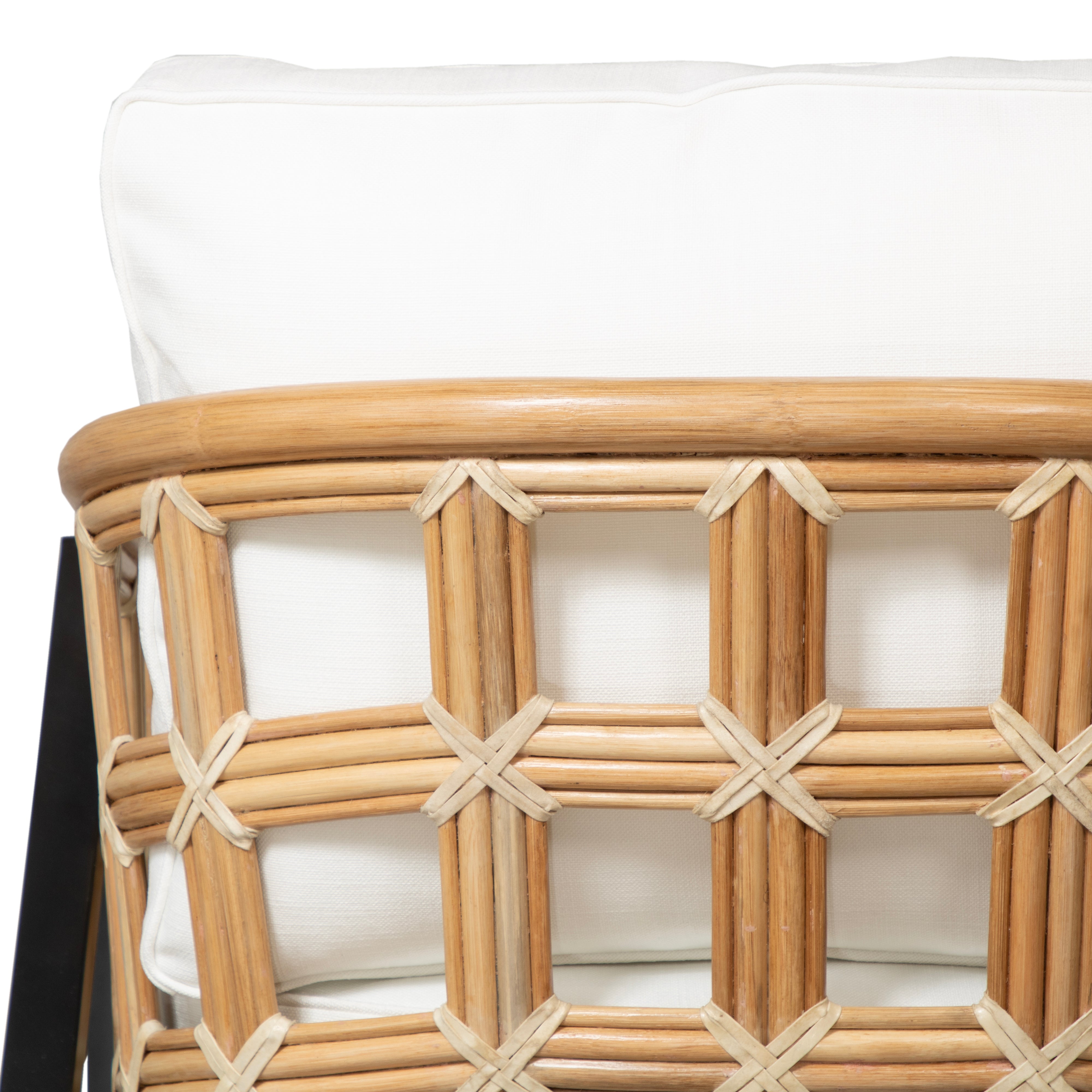 The Lucca Lounge Chair pairs architectural precision with handcrafted warmth. Its signature dual-layered rattan grid, with raw leather bindings, adds depth and texture while showcasing artisan craftsmanship. A sleek powder-coated metal base balances the organic rattan with modern lines. With plush cushions, a wide stance, and over 40 finishes and 60+ performance fabrics to choose from, Lucca offers customizable comfort and sculptural elegance for refined residential or hospitality spaces.