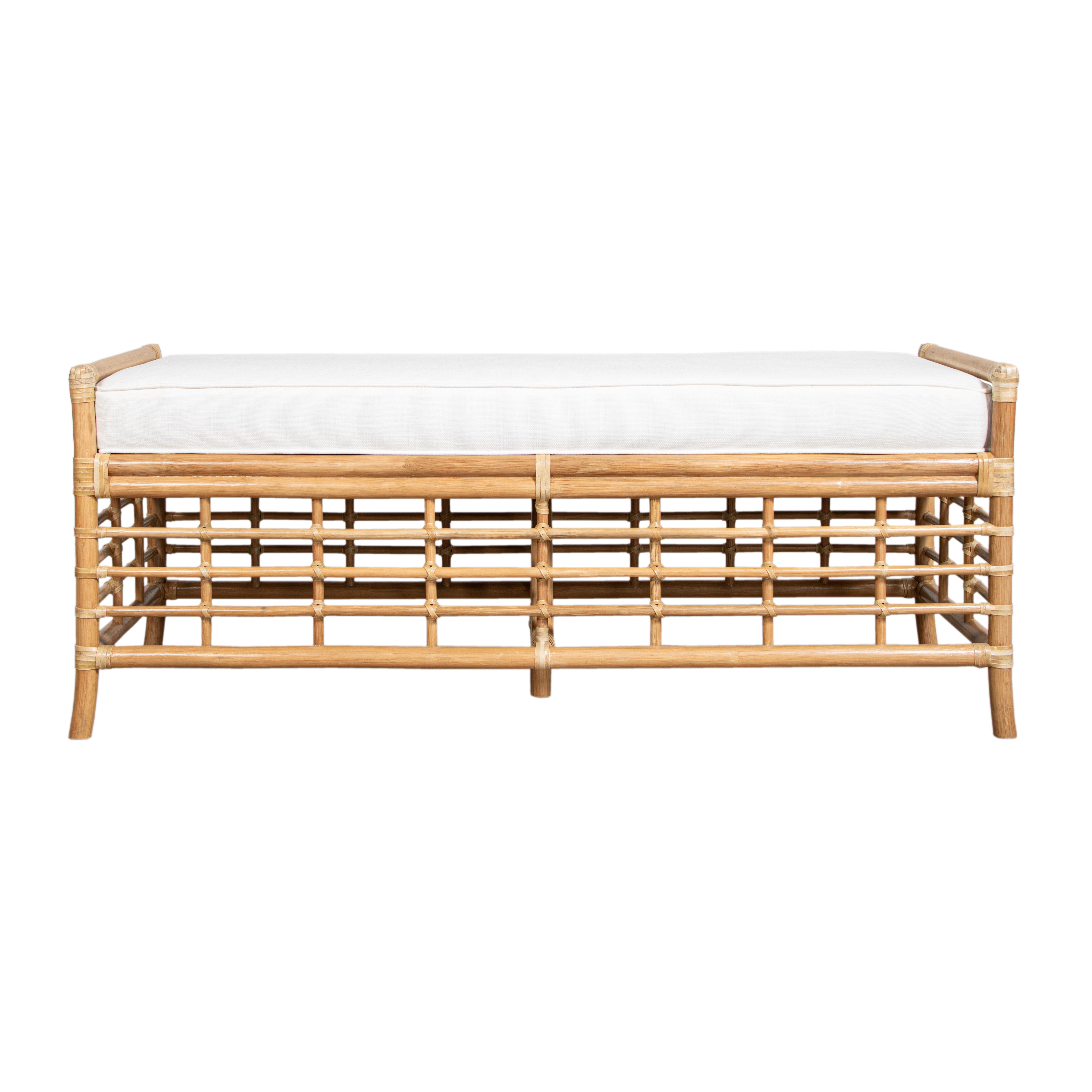 The Luna Bench adds a touch of art and sophistication to any space. The sustainably handcrafted rattan frame, available in a variety of finishes, exudes elegance and exclusivity. The customizable seat, available in both COM and performance fabrics, promises comfort and style.
