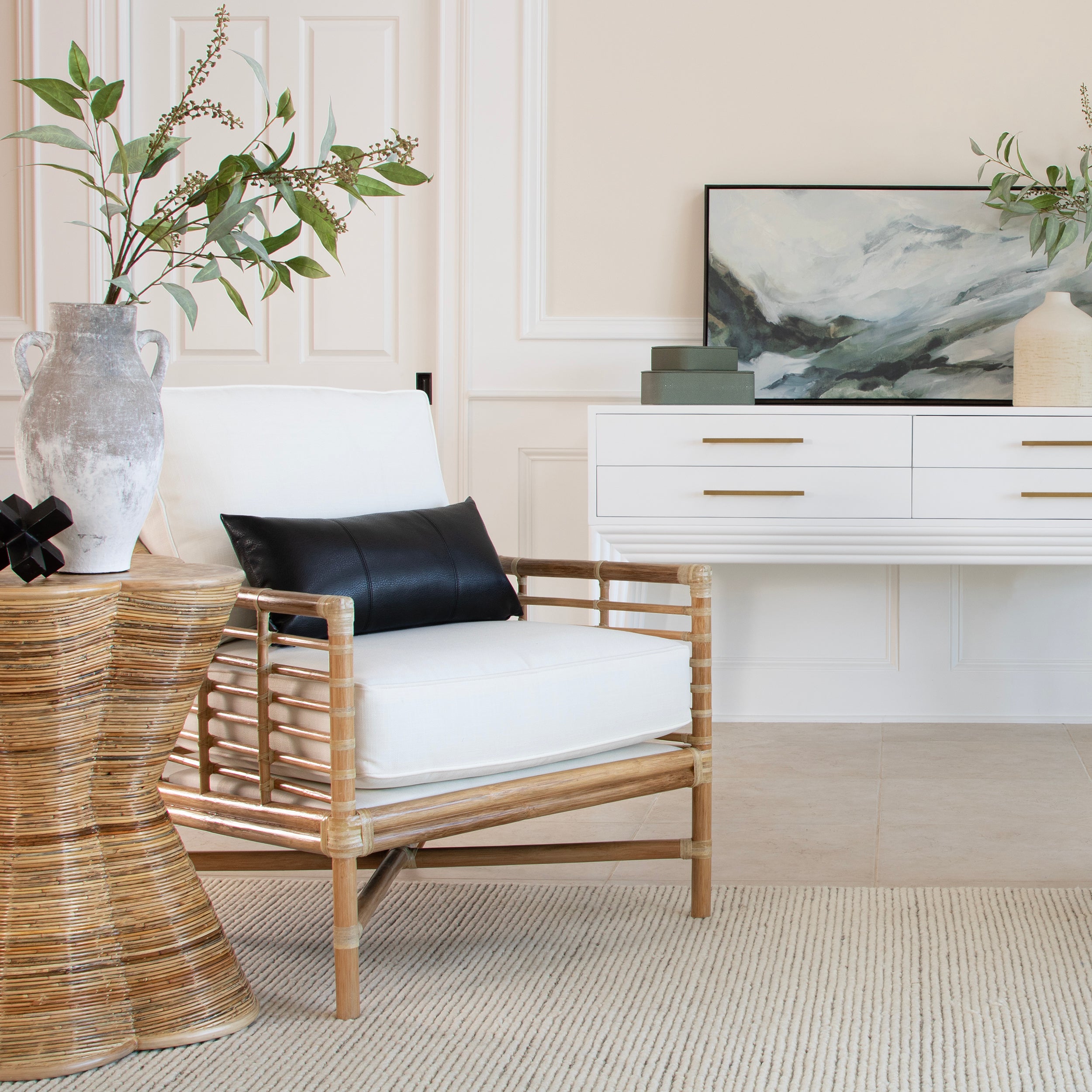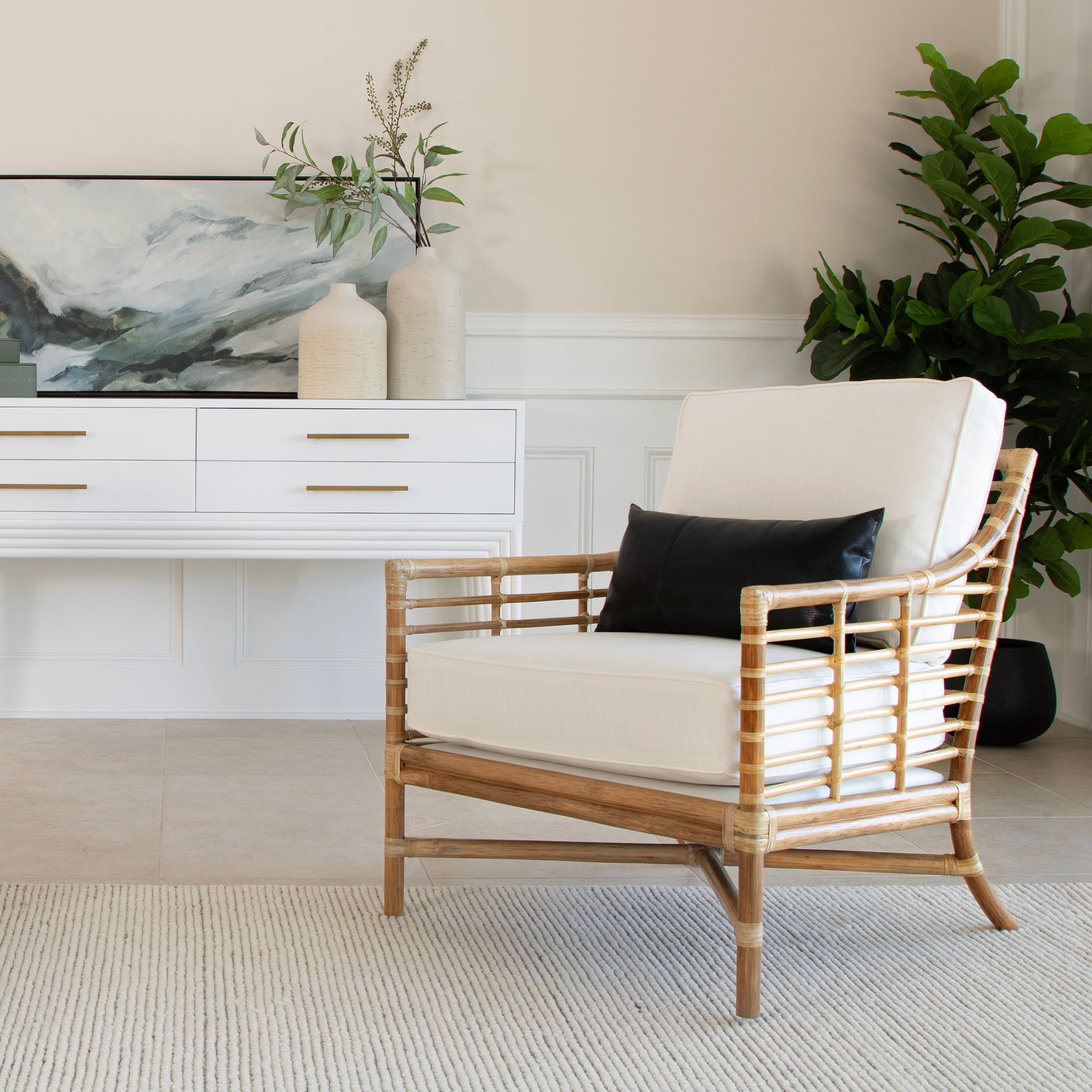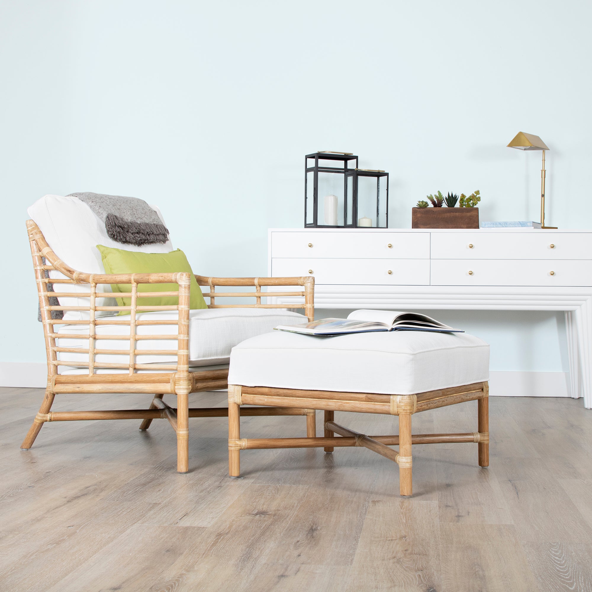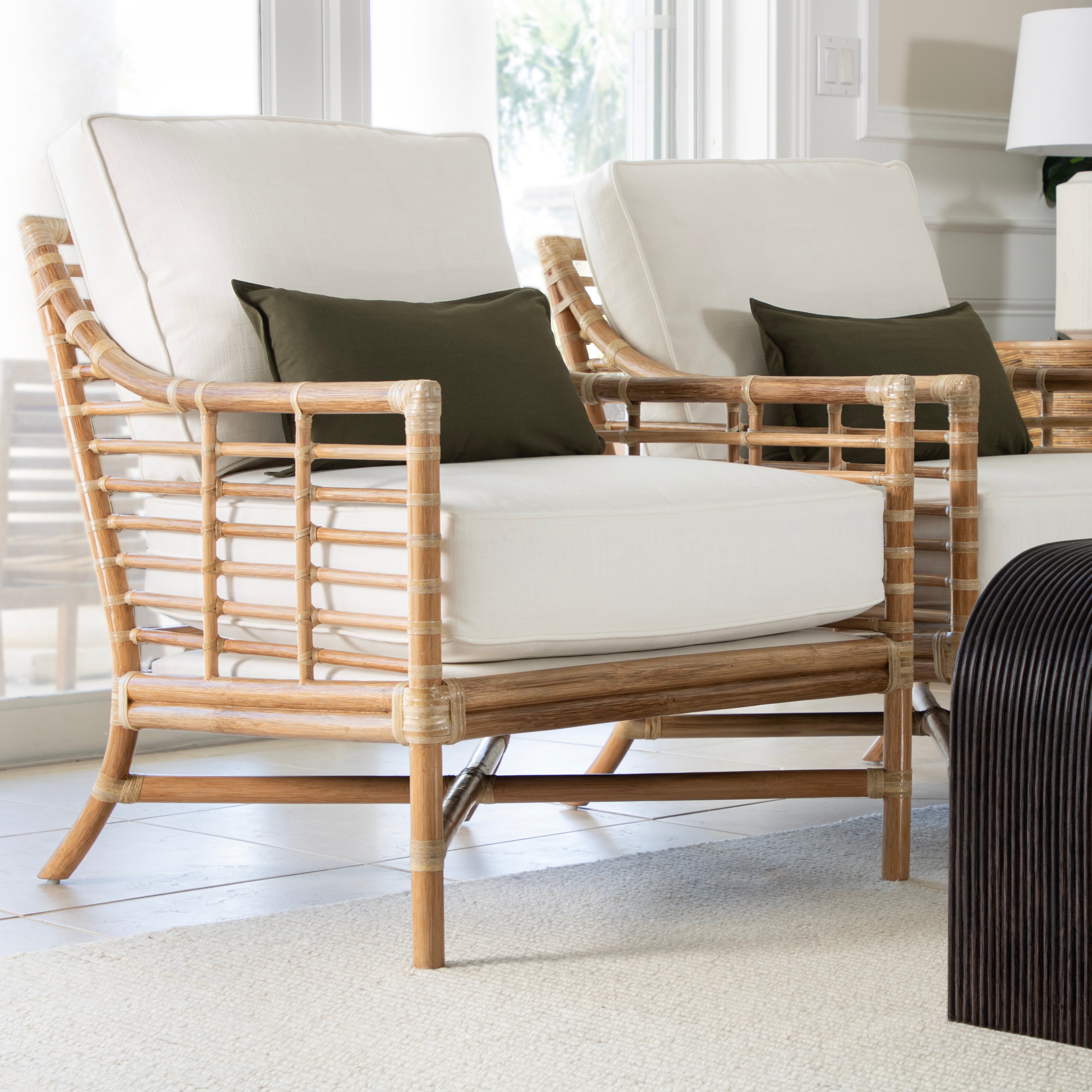 Experience modern sustainable elegance with the Luna Lounge Chair. Its sophisticated design, crafted from natural rattan and leather bindings, adds a touch of luxury to any space. Choose from a variety of finishes and fabrics, including Sunbrella and insideOut performance options or your very own COM to fit your design aesthetic. A Spring & Down cushion upgrade is also available!