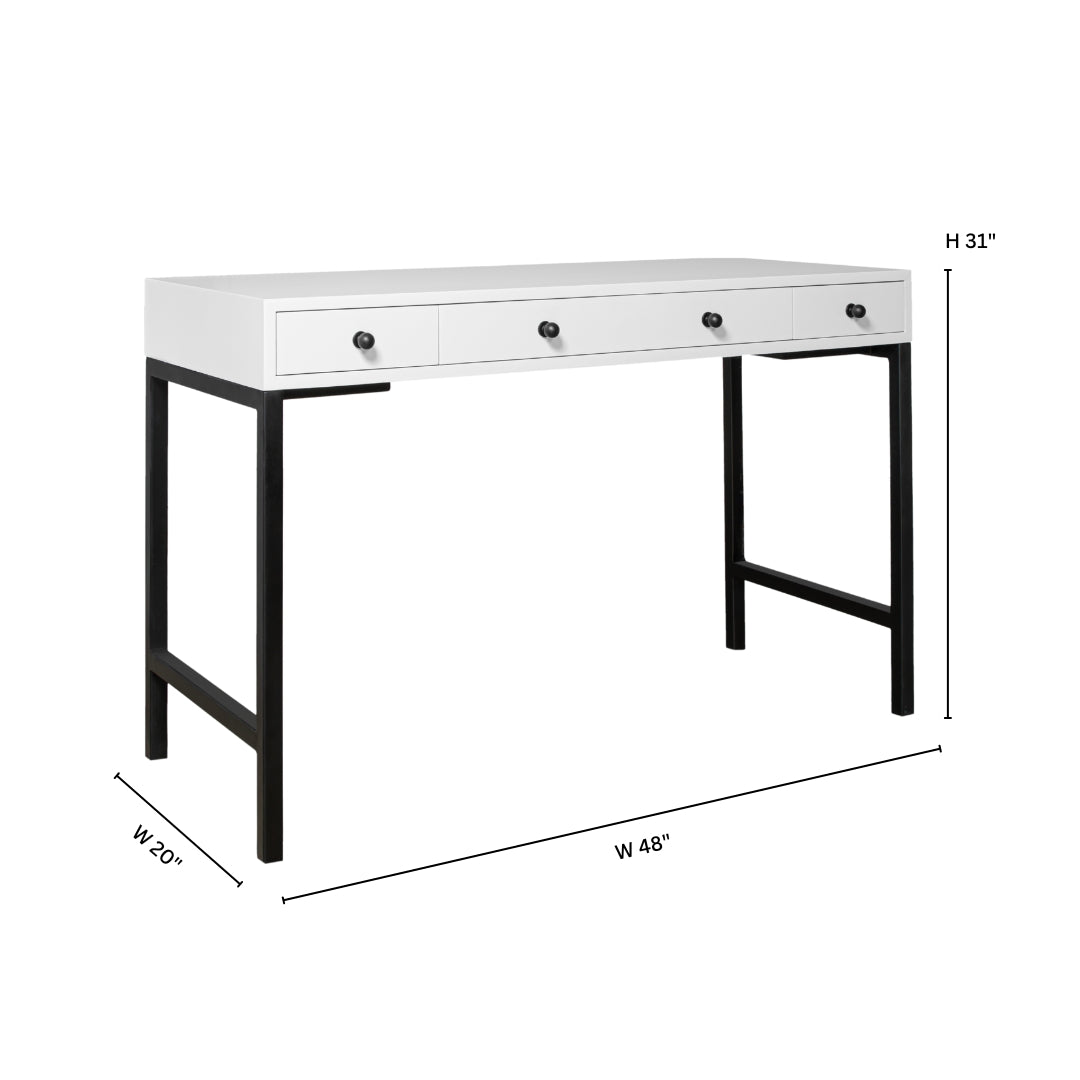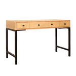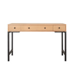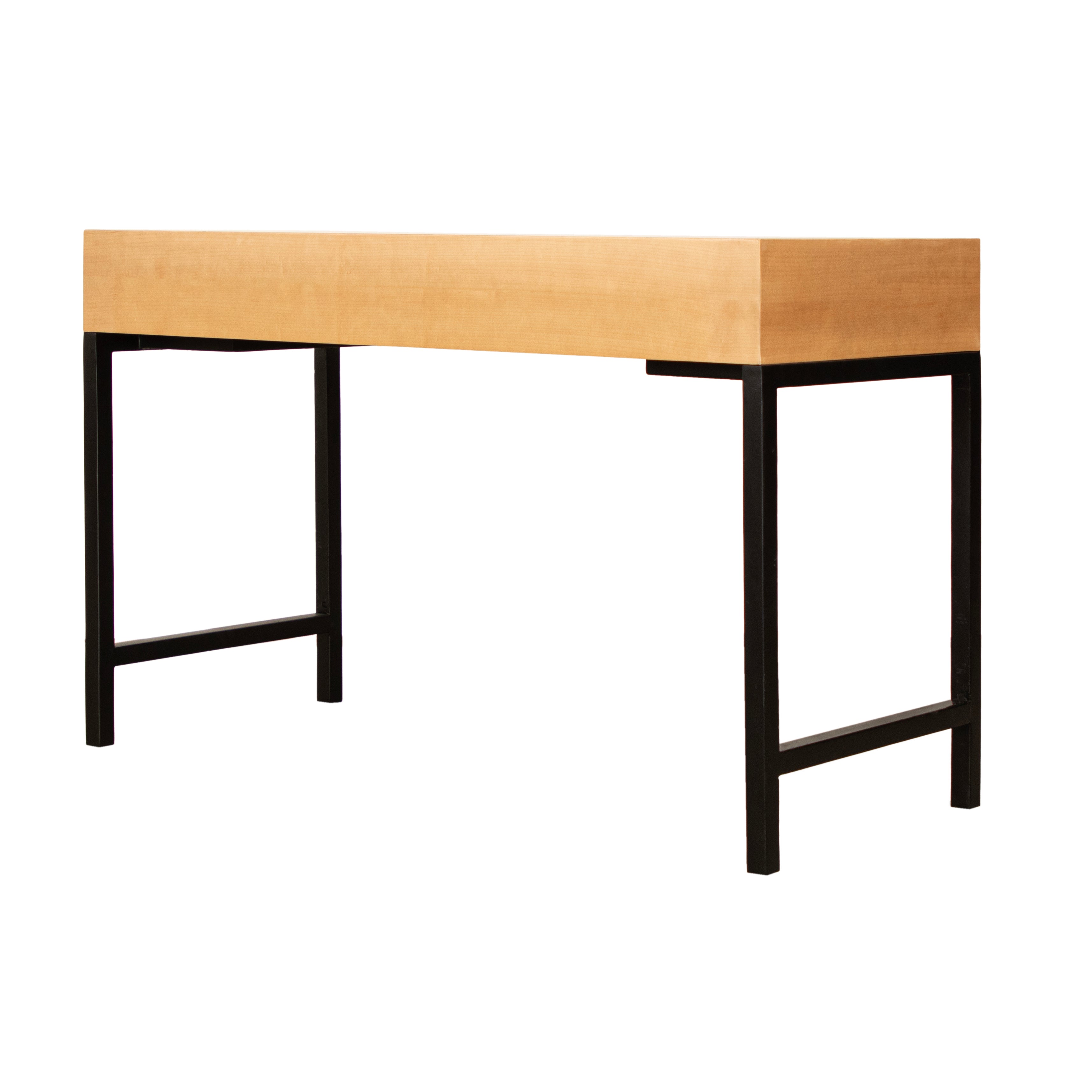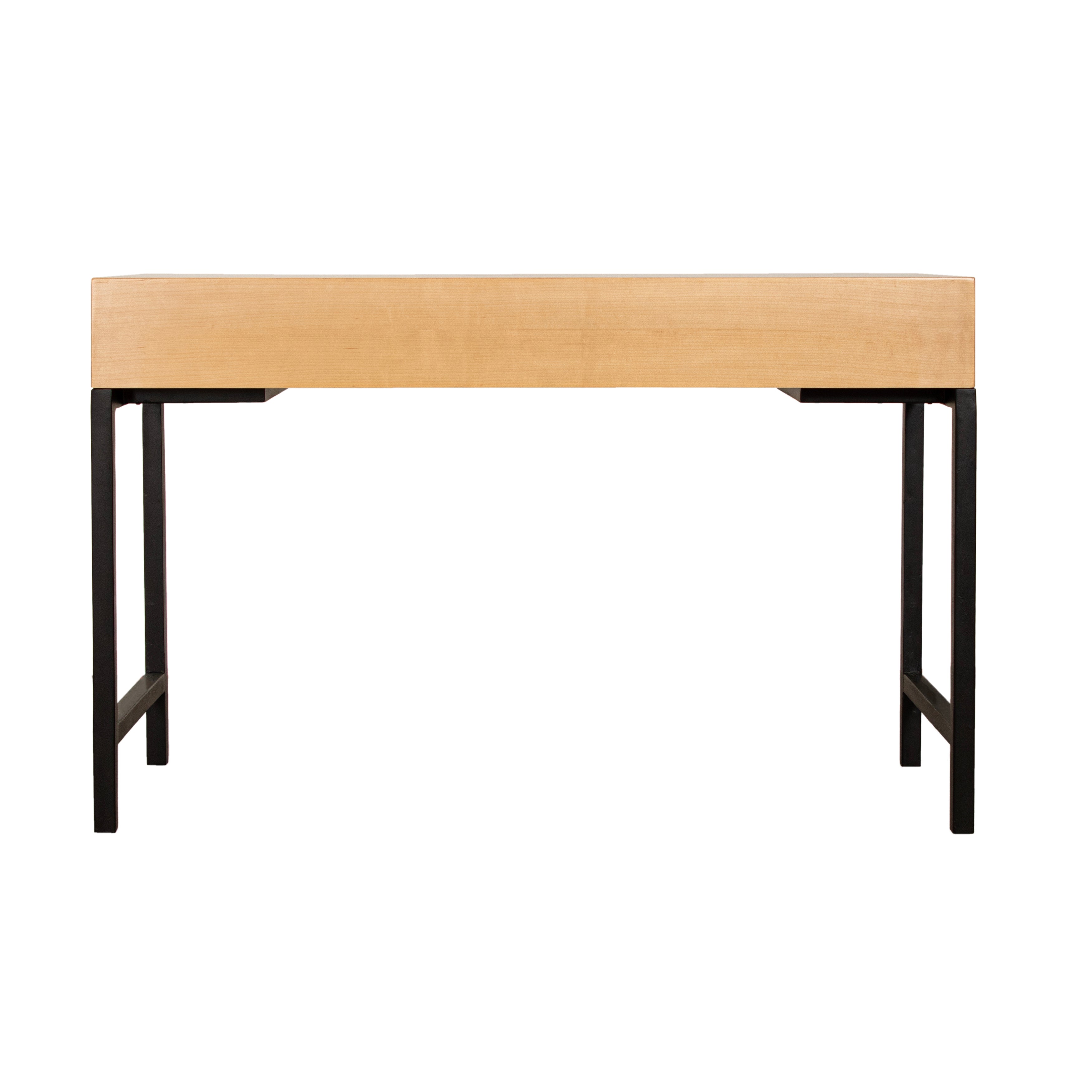 The Maple Writing Desk is the perfect blend of style and functionality. Crafted with a maple wood desk top and metal legs, it exudes a natural and sophisticated look. With three drawers and soft-close drawer glides, organization is made easy. Customize your desk with various standard and premium finishes, as well as a variety of ball knob color options. Experience the ultimate sustainable desk for your workspace.