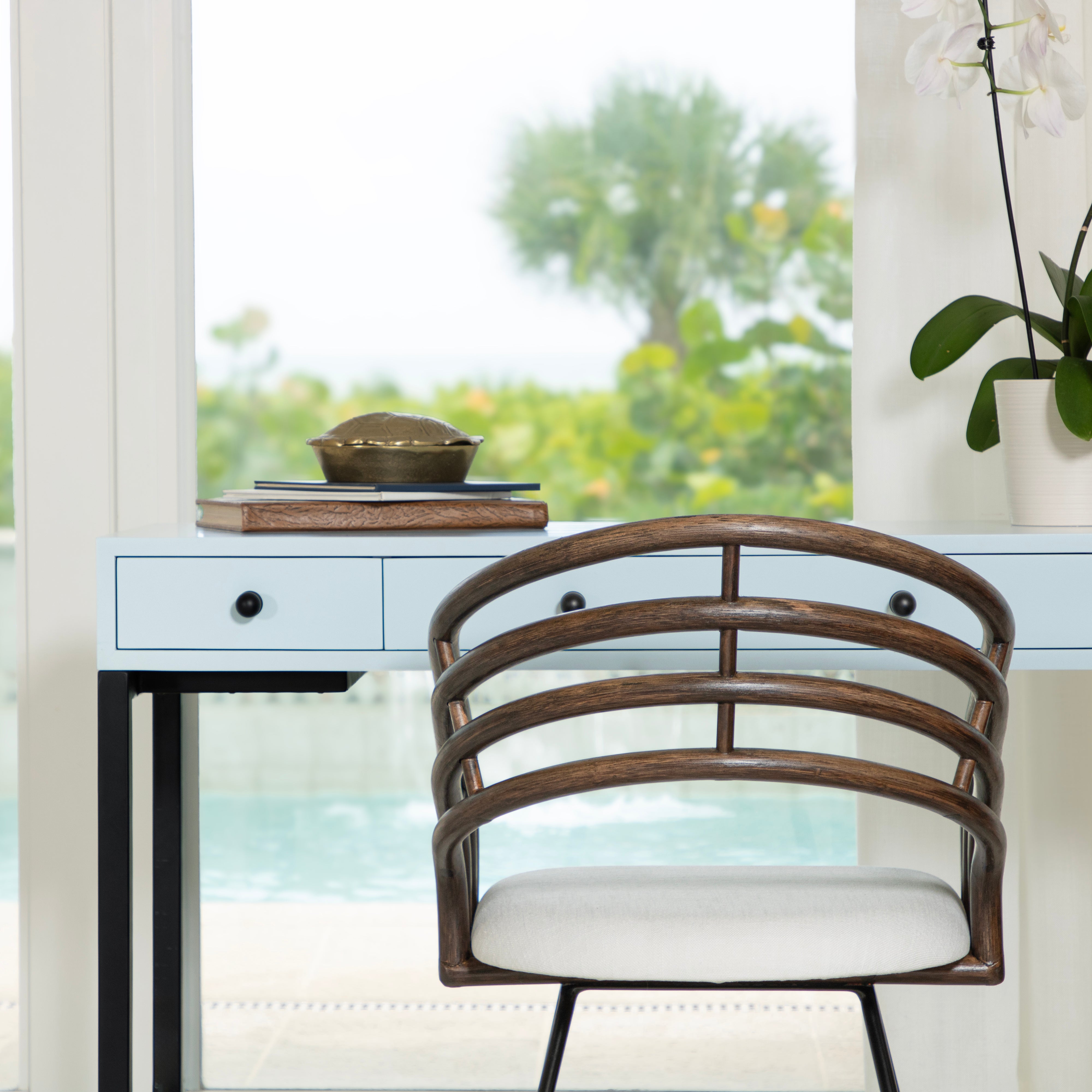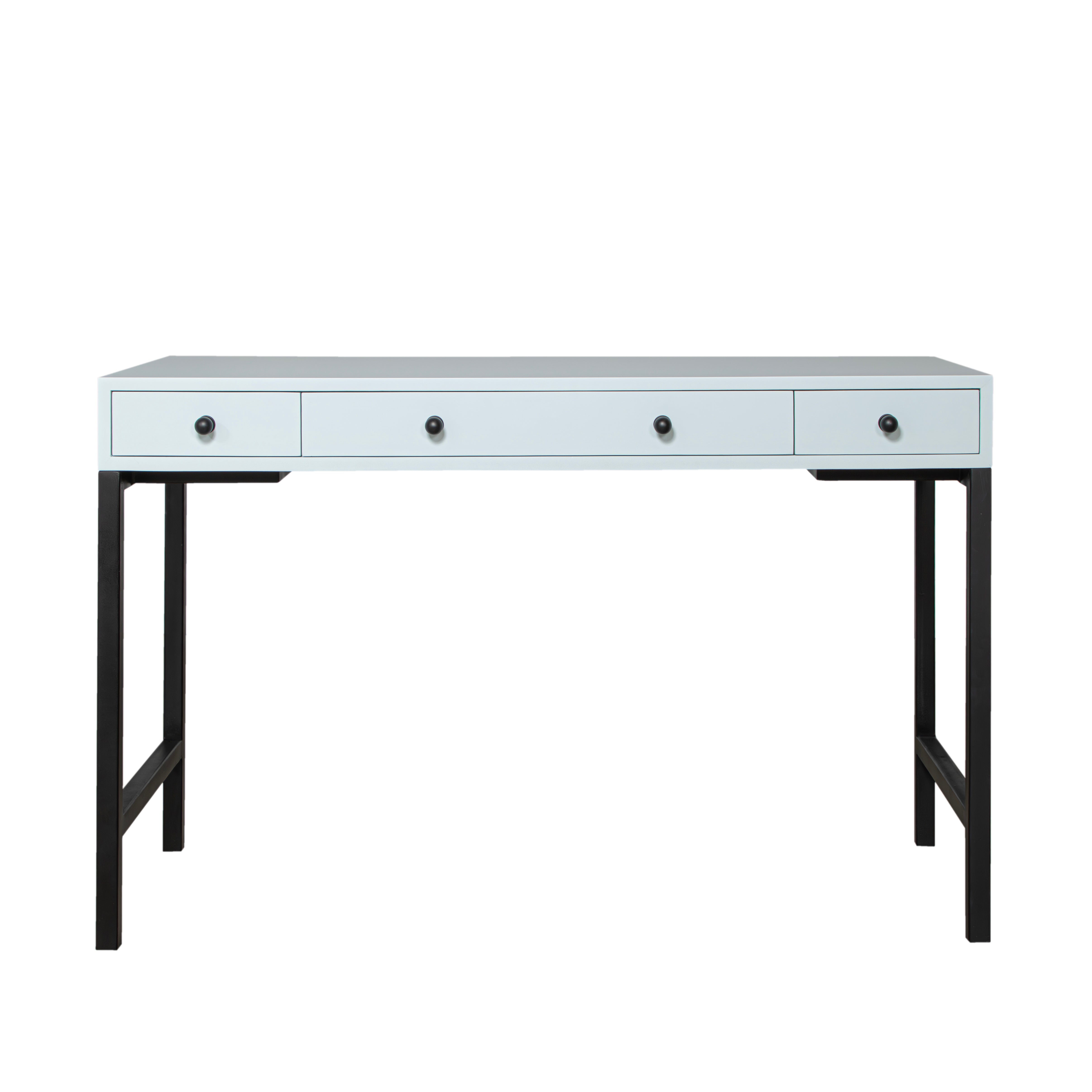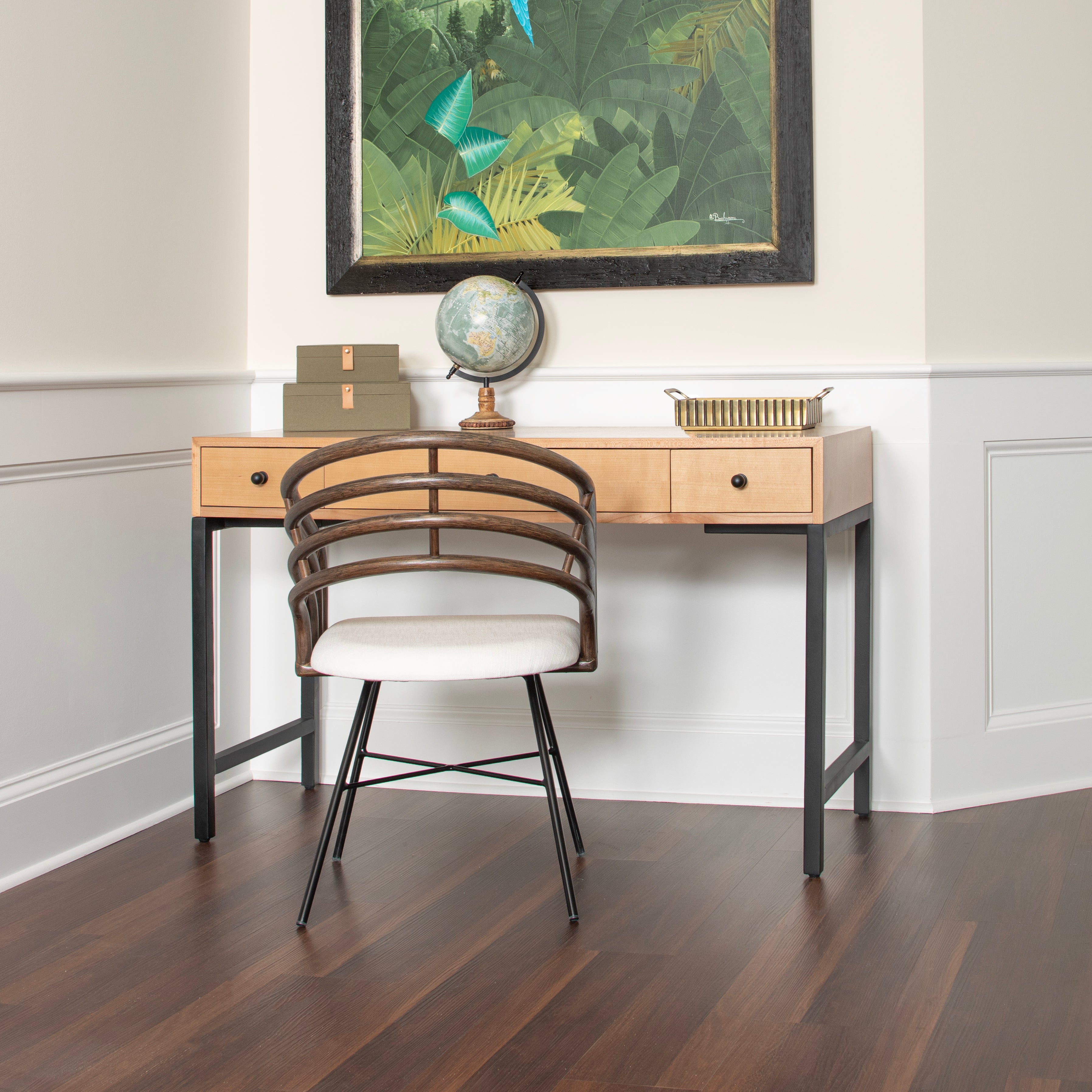 The Maple Writing Desk is the perfect blend of style and functionality. Crafted with a maple wood desk top and metal legs, it exudes a natural and sophisticated look. With three drawers and soft-close drawer glides, organization is made easy. Customize your desk with various standard and premium finishes, as well as a variety of ball knob color options. Experience the ultimate sustainable desk for your workspace.