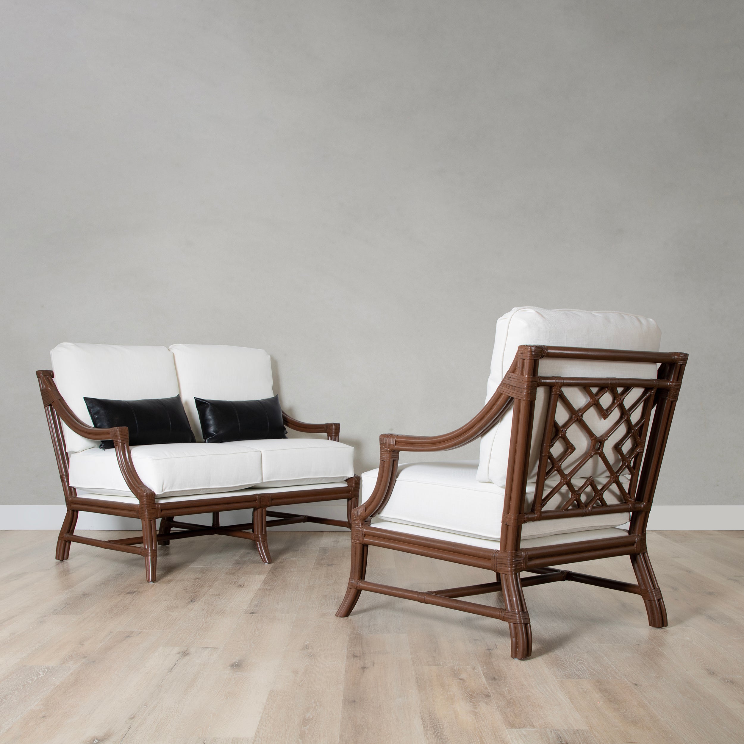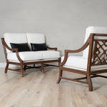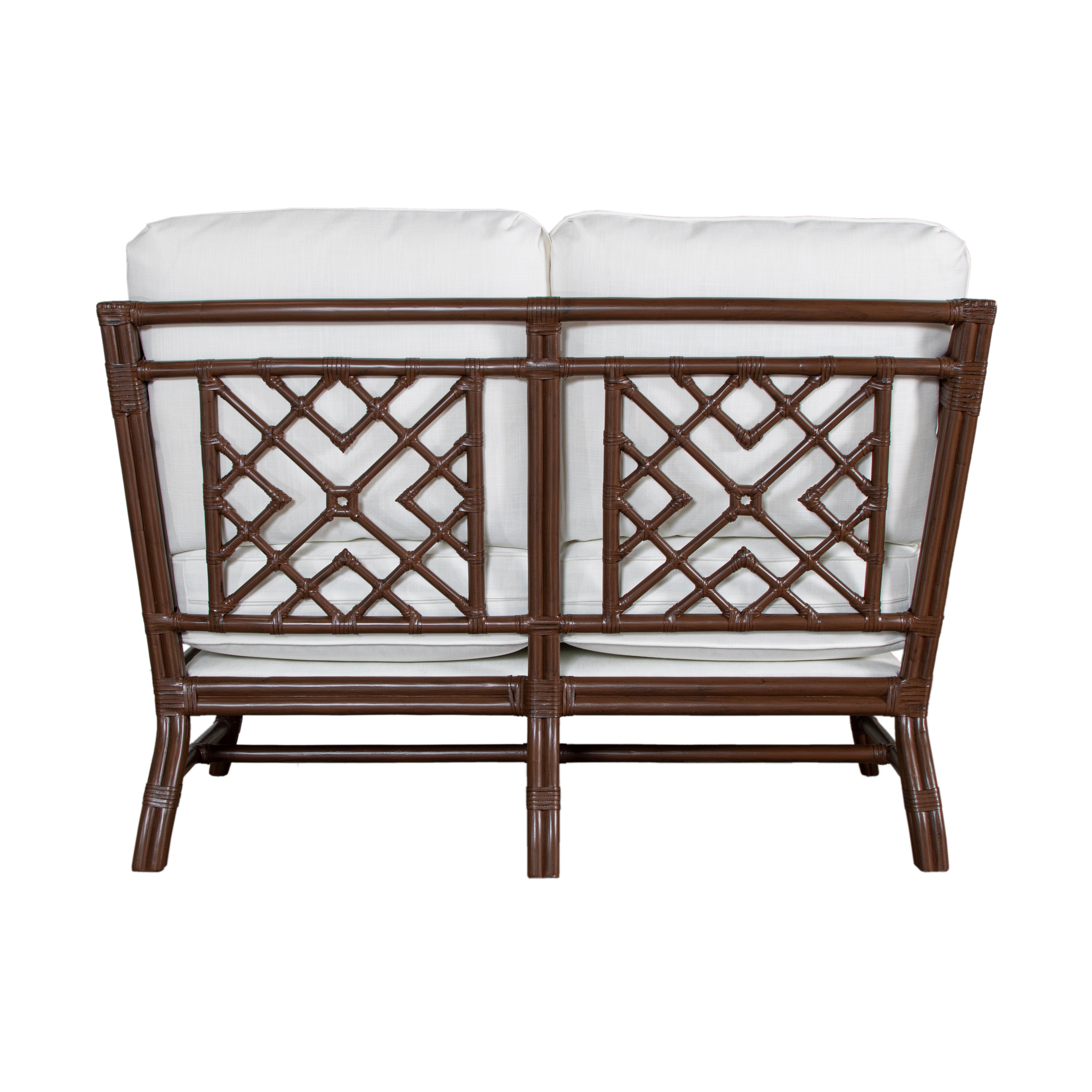 Add a touch of timeless elegance to your living space with the Mosaic Loveseat. Sustainably handcrafted with a sturdy rattan frame and leather bindings, this loveseat exudes classic charm. Choose from a variety of finishes, performance fabrics, or your COM. Upgrade to a Spring & Down cushion for ultimate comfort.