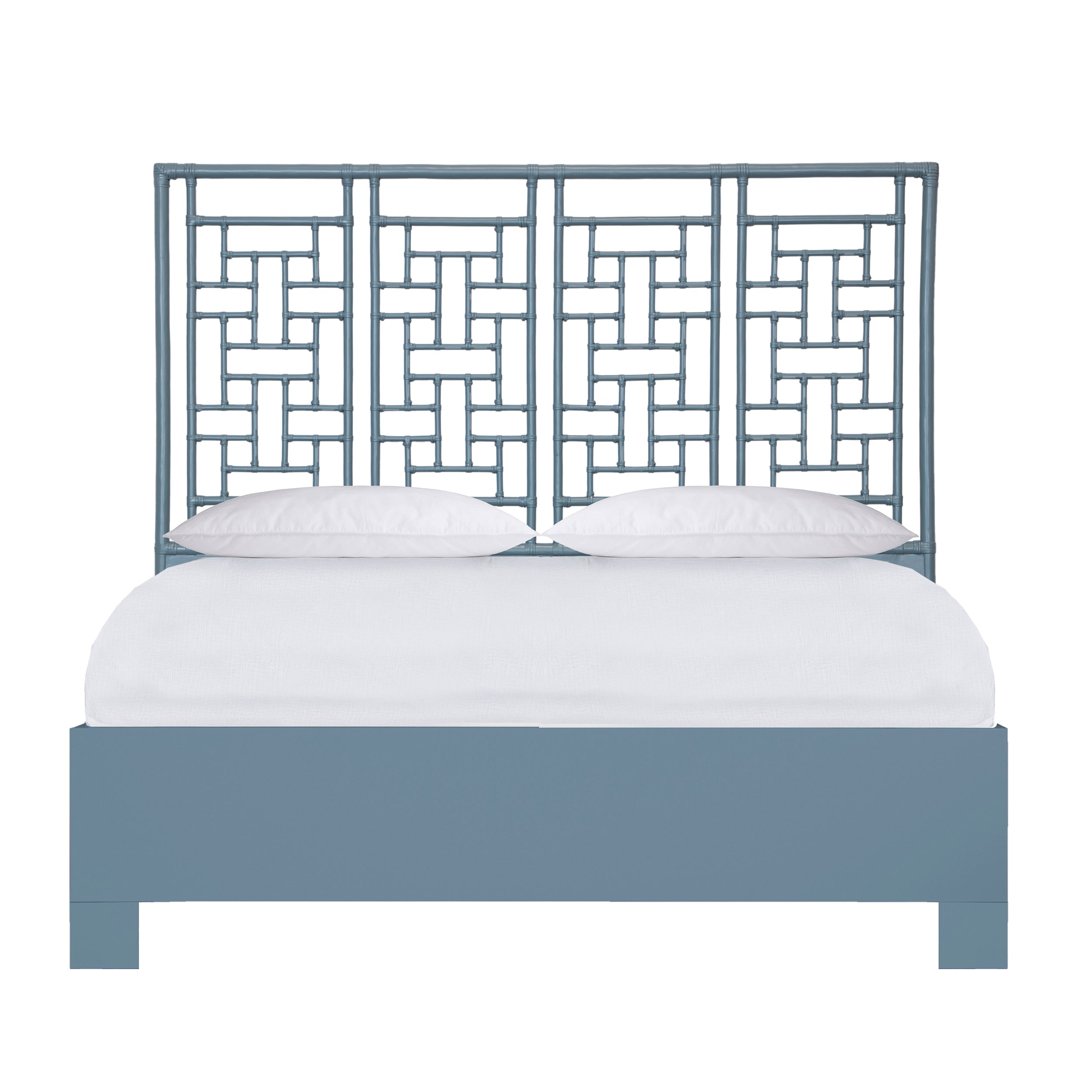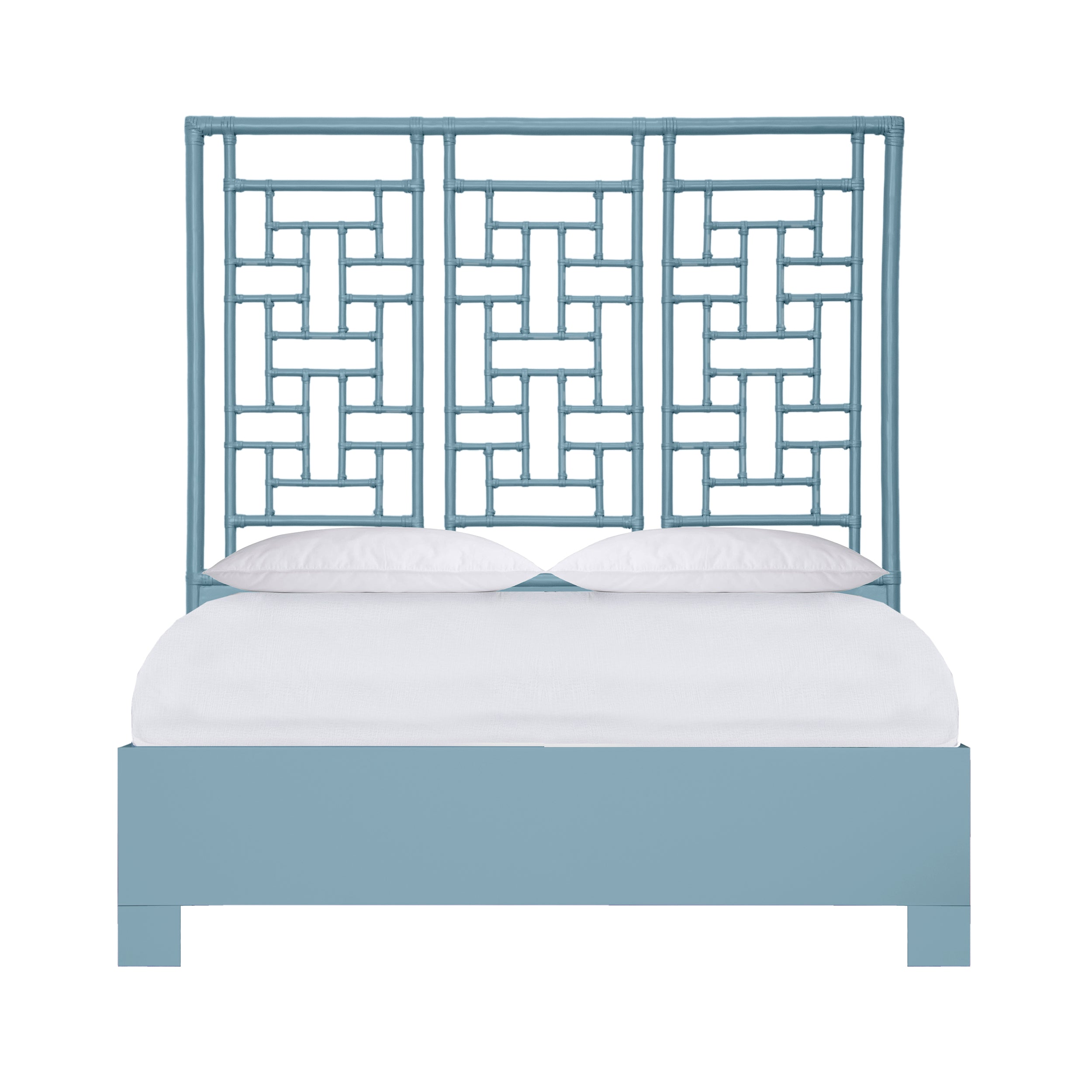 This bed features a Rattan headboard with a Maple Bed Frame. The Rattan headboard is wrapped with Leather Bindings to add beautiful contrast and strength. The Maple Bed Frame is available as a Standard bed frame, to accept a mattress and box spring, or as a Platform style bed, which accepts a mattress only. There are 3 bed leg styles to select from - squared, tapered, and curved. The headboard easily attaches to the bed frame. Each bed is custom-made and finished to order in the USA. This bed is an artistic centerpiece and will make a statement in any room. Constructed by master craftsmen and easily assembled, this bed is built to last.
