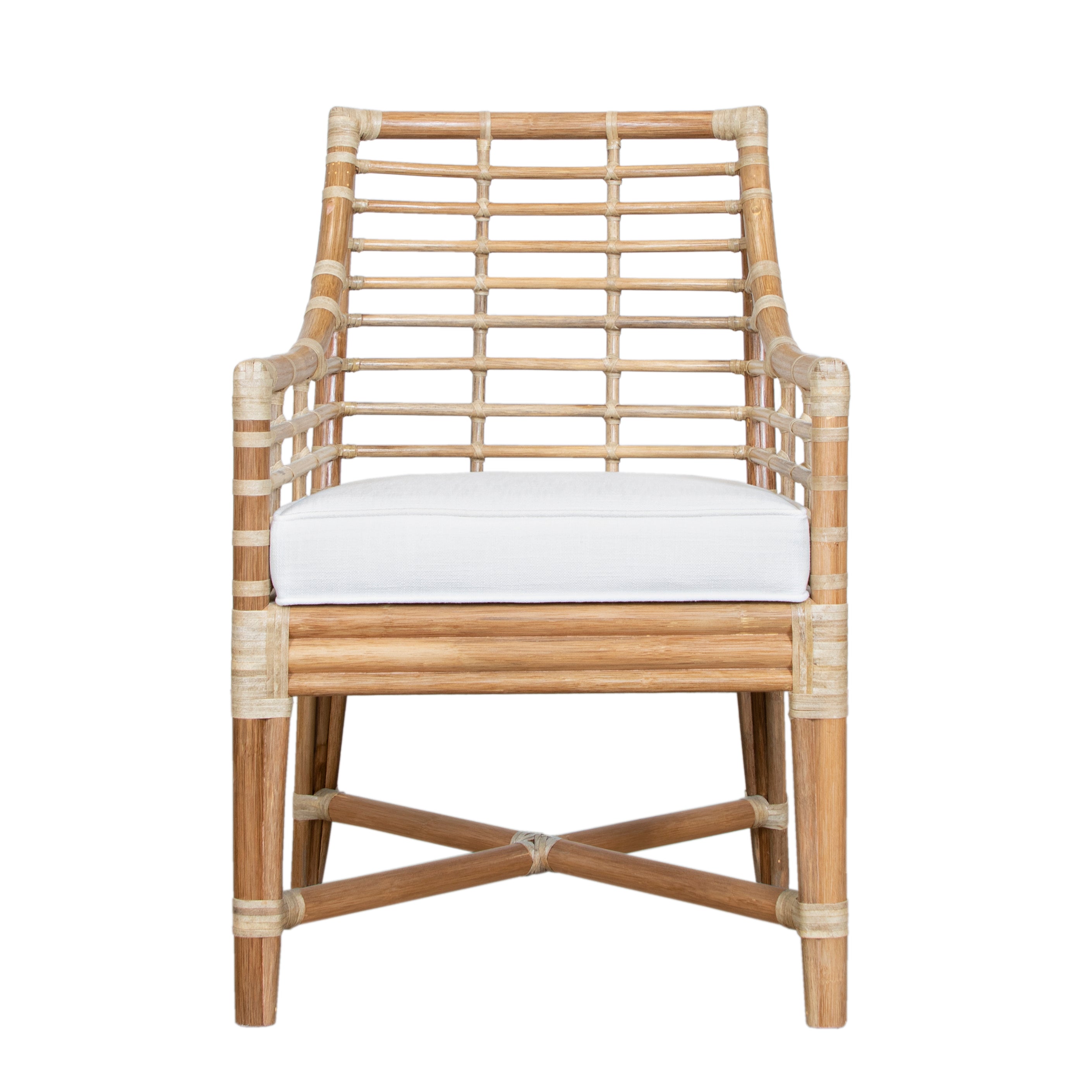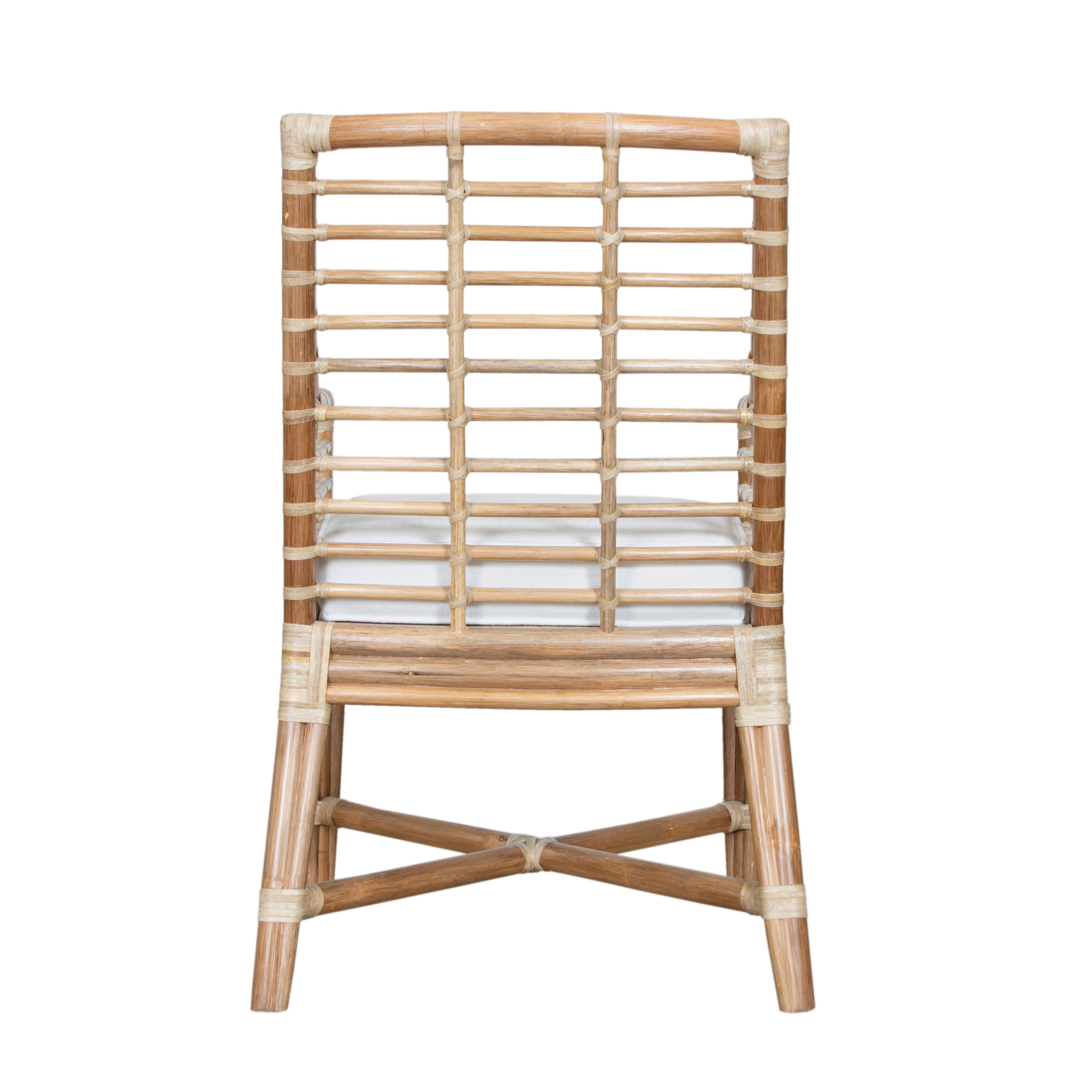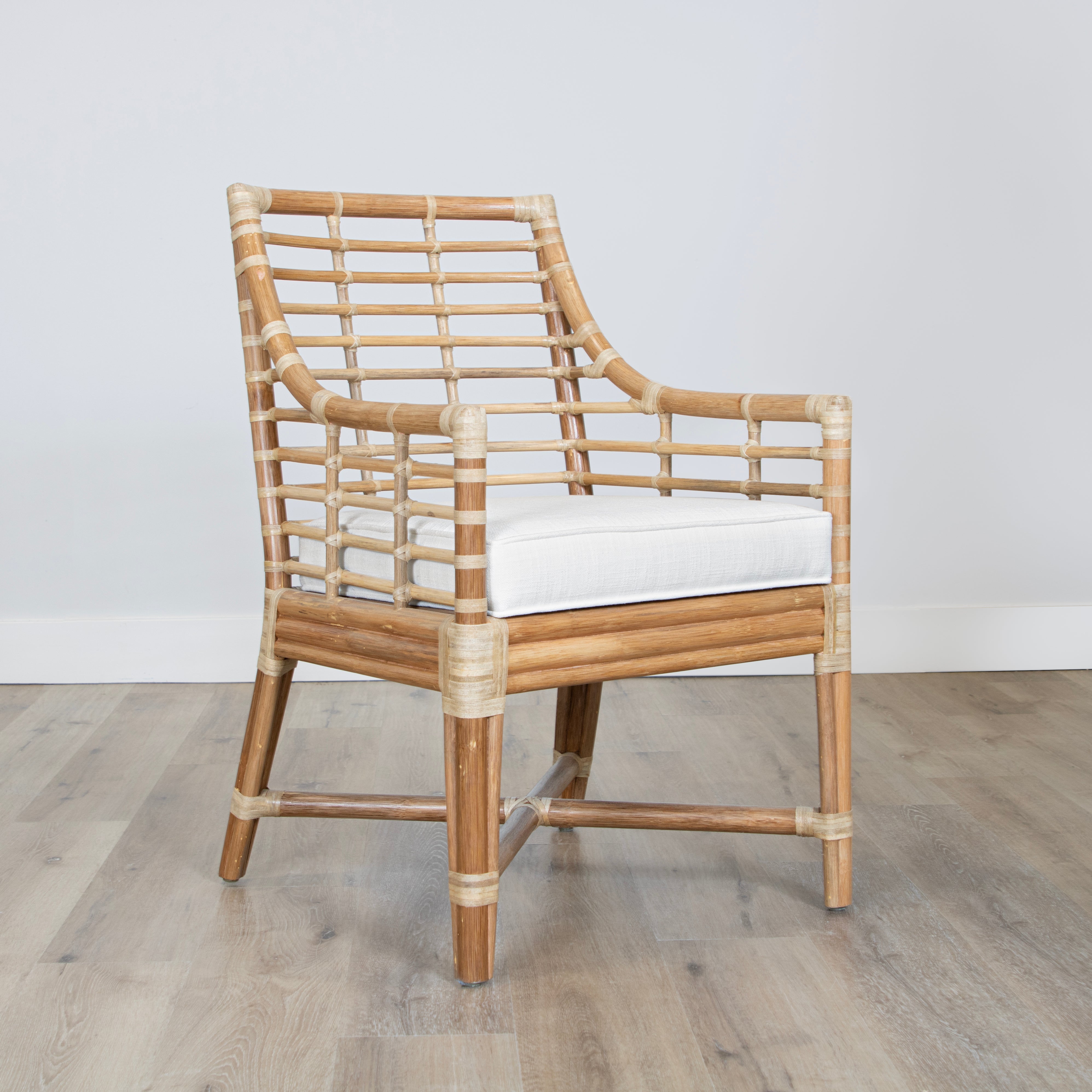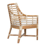 Experience modern sustainable elegance with the Luna Armchair. Its sophisticated design, crafted from natural rattan and rawhide bindings, adds a touch of luxury to any space.