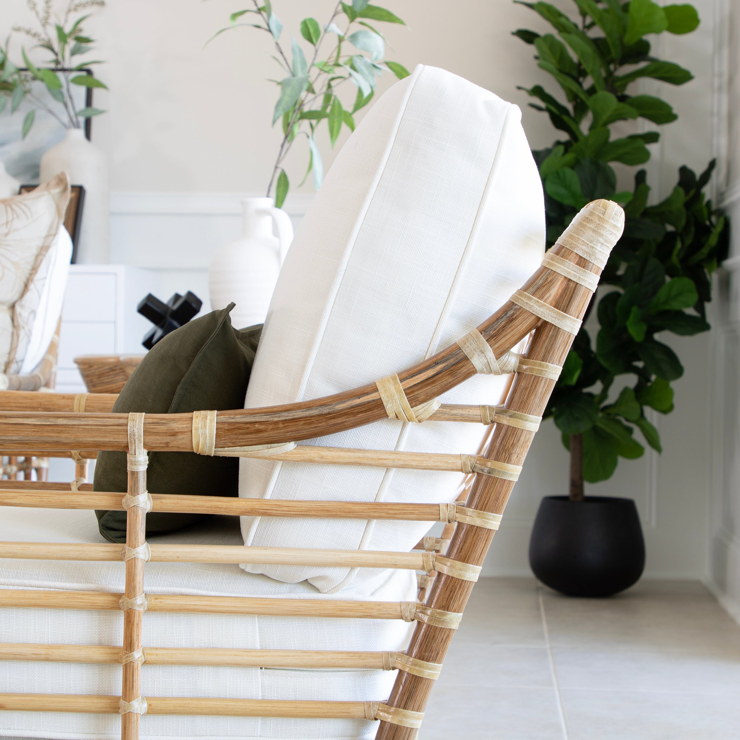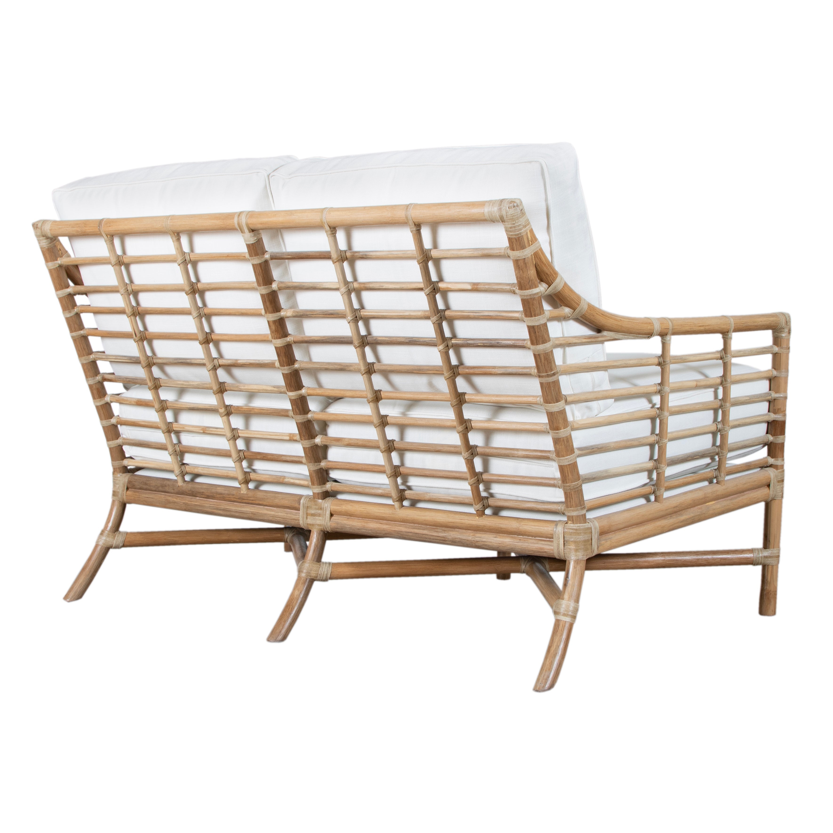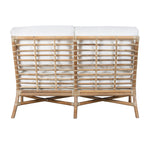 Experience modern sustainably elegance with the Luna Loveseat. Its sophisticated design, crafted from natural rattan and rawhide bindings, adds a touch of luxury to any space.
