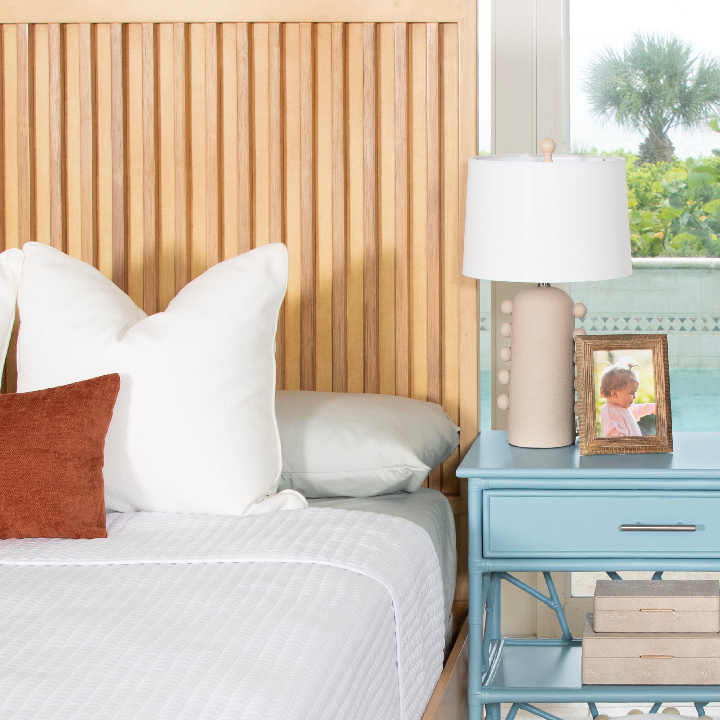 The Nova Headboard brings sculptural simplicity and natural texture to the bedroom. Crafted from wood and detailed with evenly spaced square rattan slats, its vertical design creates a sense of rhythm, warmth, and architectural balance—perfect for adding depth and quiet character to any sleeping space.