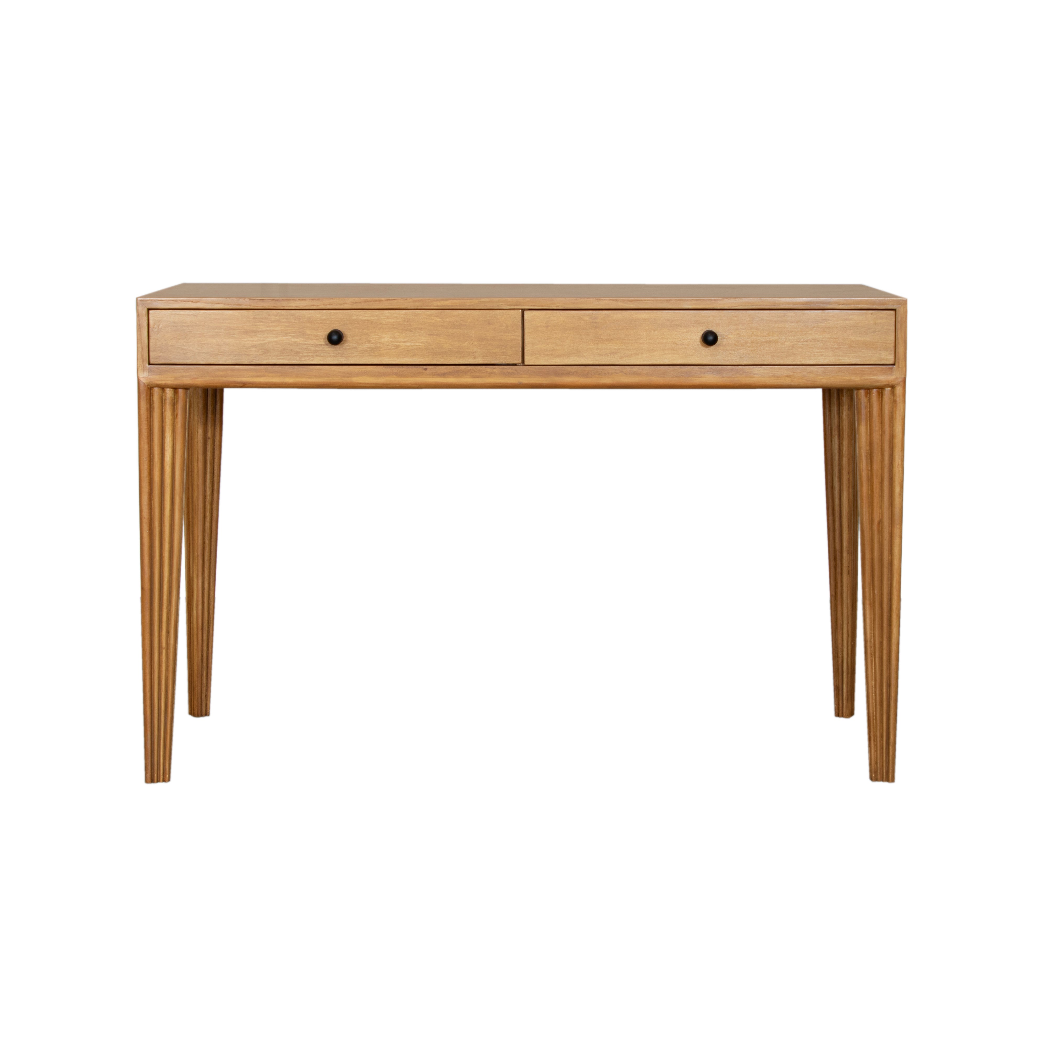Add a touch of sophistication and elegance with the Sedona Desk. Sustainably crafted with a sturdy wood frame, hardwood pole design legs and lower framing, this desk is both luxurious and durable. With two drawers, it provides functional storage while maintaining a sleek aesthetic.