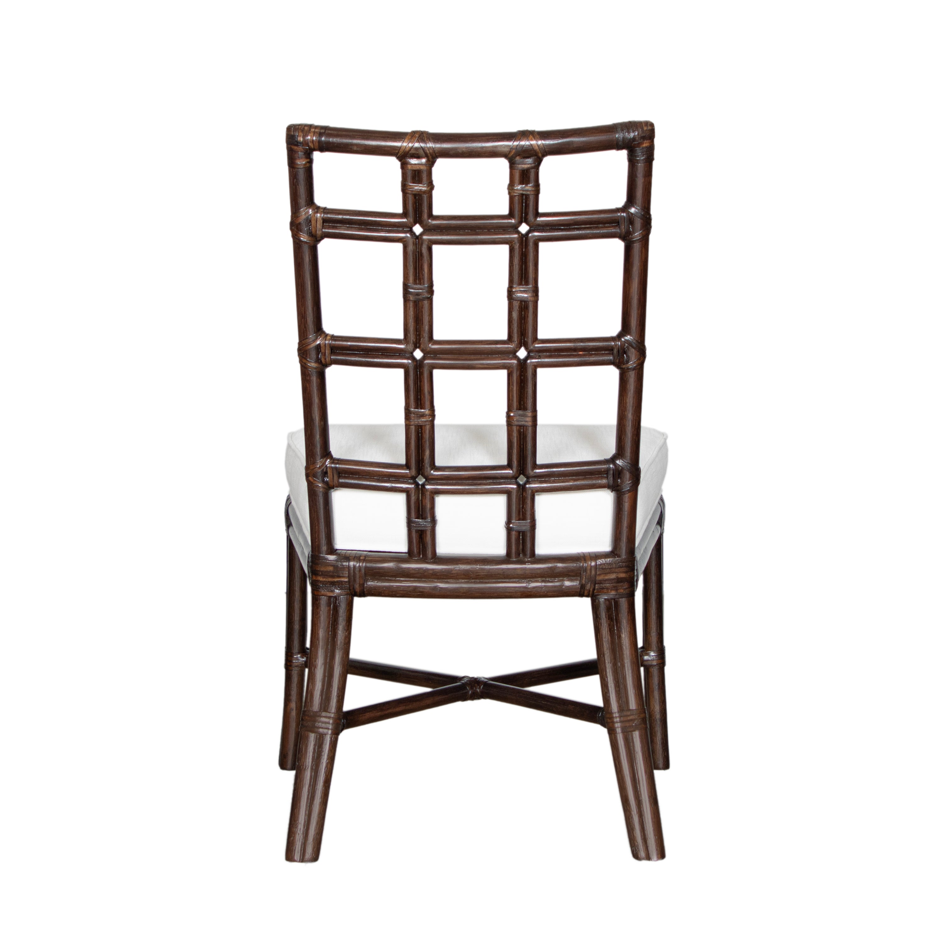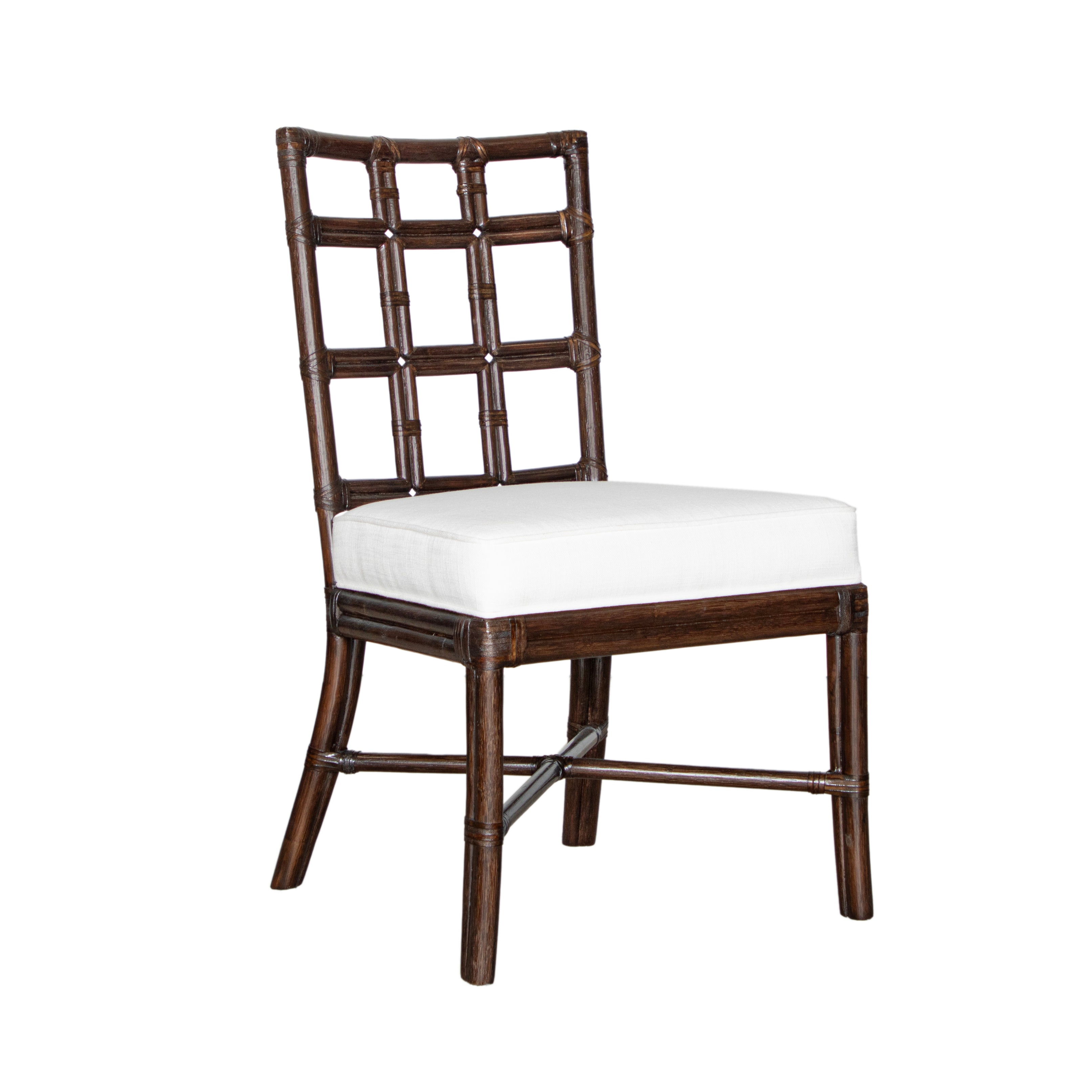 Add a touch of modern elegance to your space with the Seville Side Chair. Featuring a stylish square pattern design, this rattan chair is both durable and fashionable. The rawhide wrapping at all joints adds a unique touch.