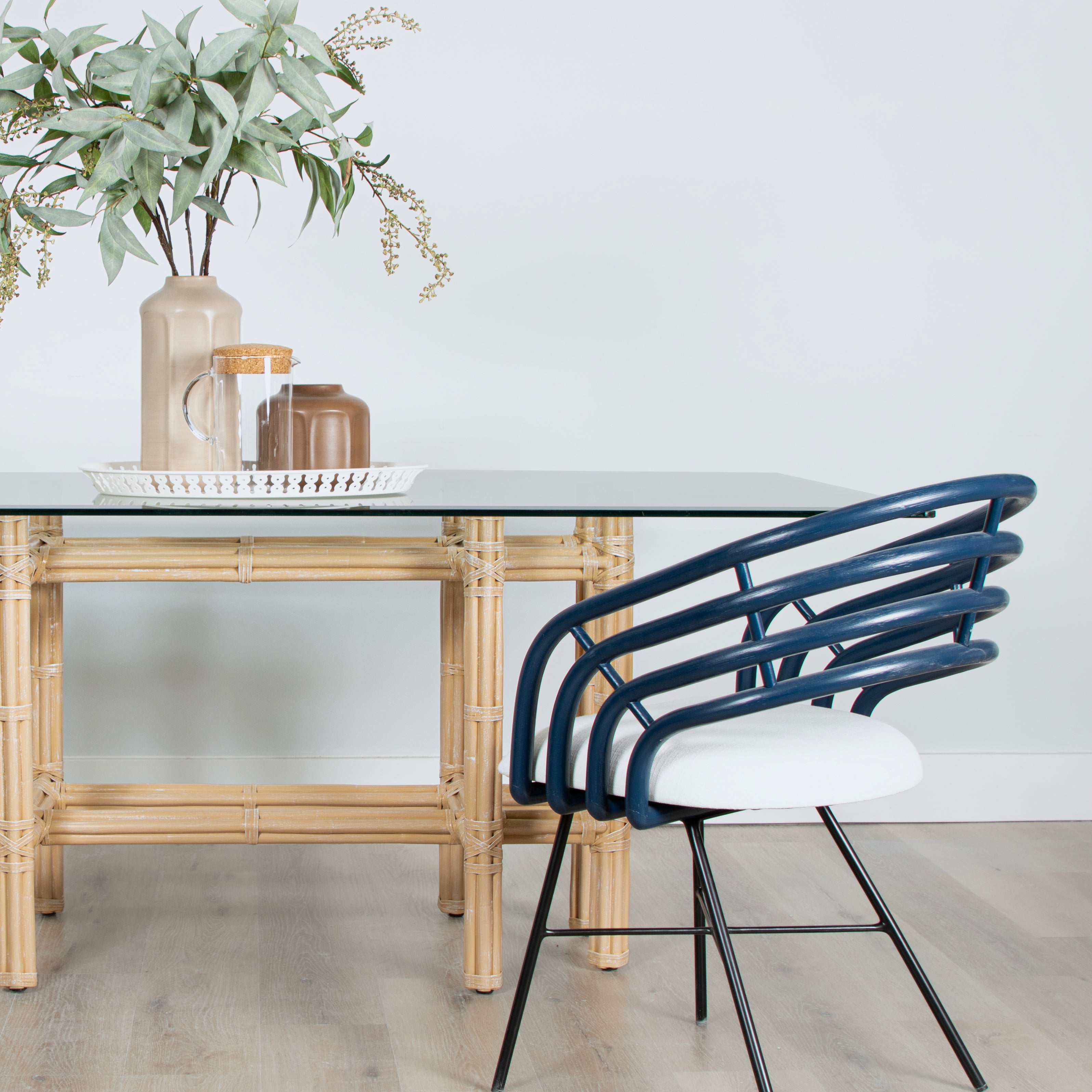 Experience the perfect blend of sustainability, style, and durability with our Rectangular Table Base. Made of a rattan over steel frame with leather bindings, this table base is built to last. Available in a variety of finishes to fit your design project.