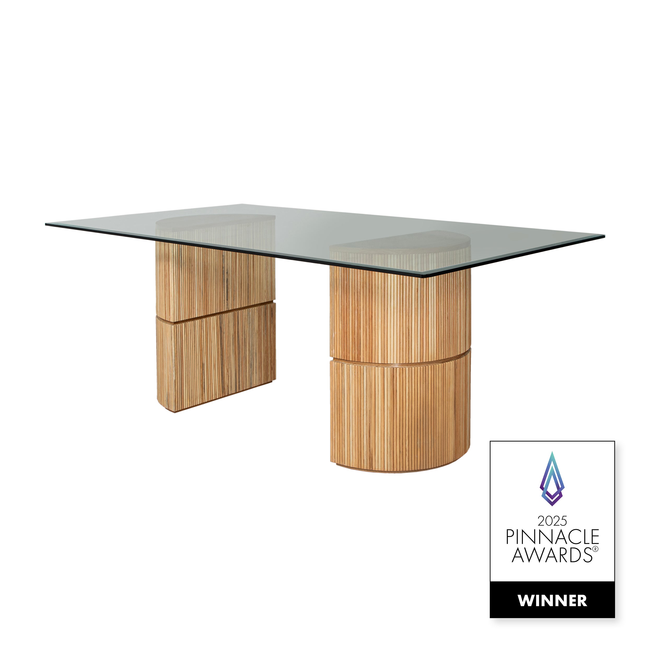 The Santiago Console Table Base, composed of two half-moon components, can be configured into a variety of table shapes and sizes - round, rectangular, or square - offering unparalleled adaptability for formal or casual settings. The vertical pencil rattan detailing and starburst wood top bring warmth, texture, and visual interest, making it a centerpiece of functional elegance.