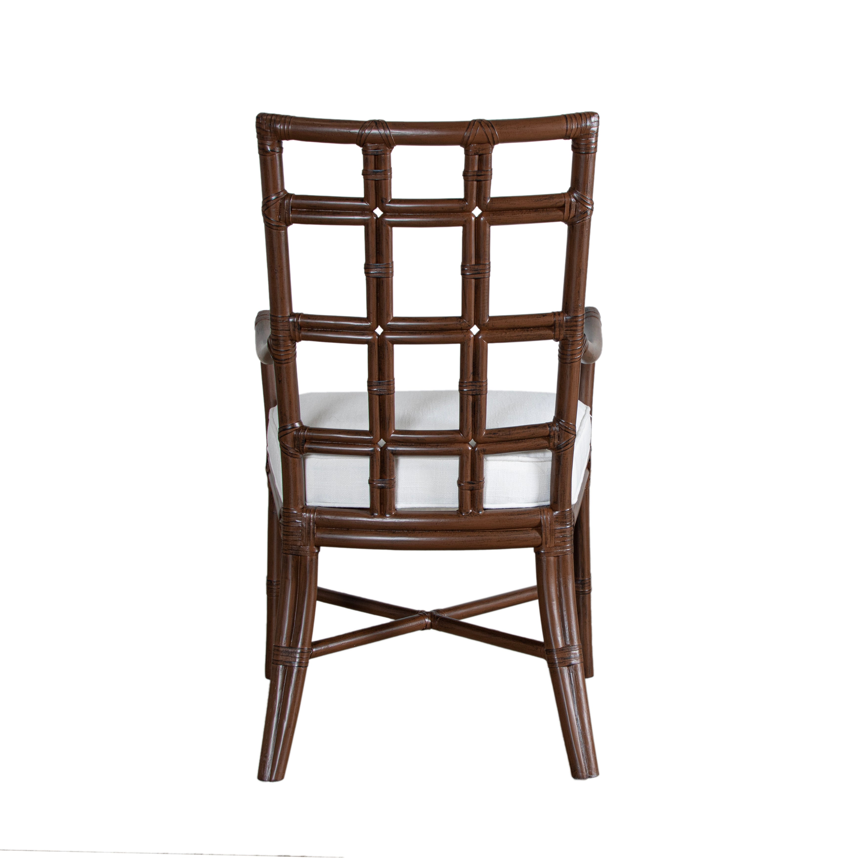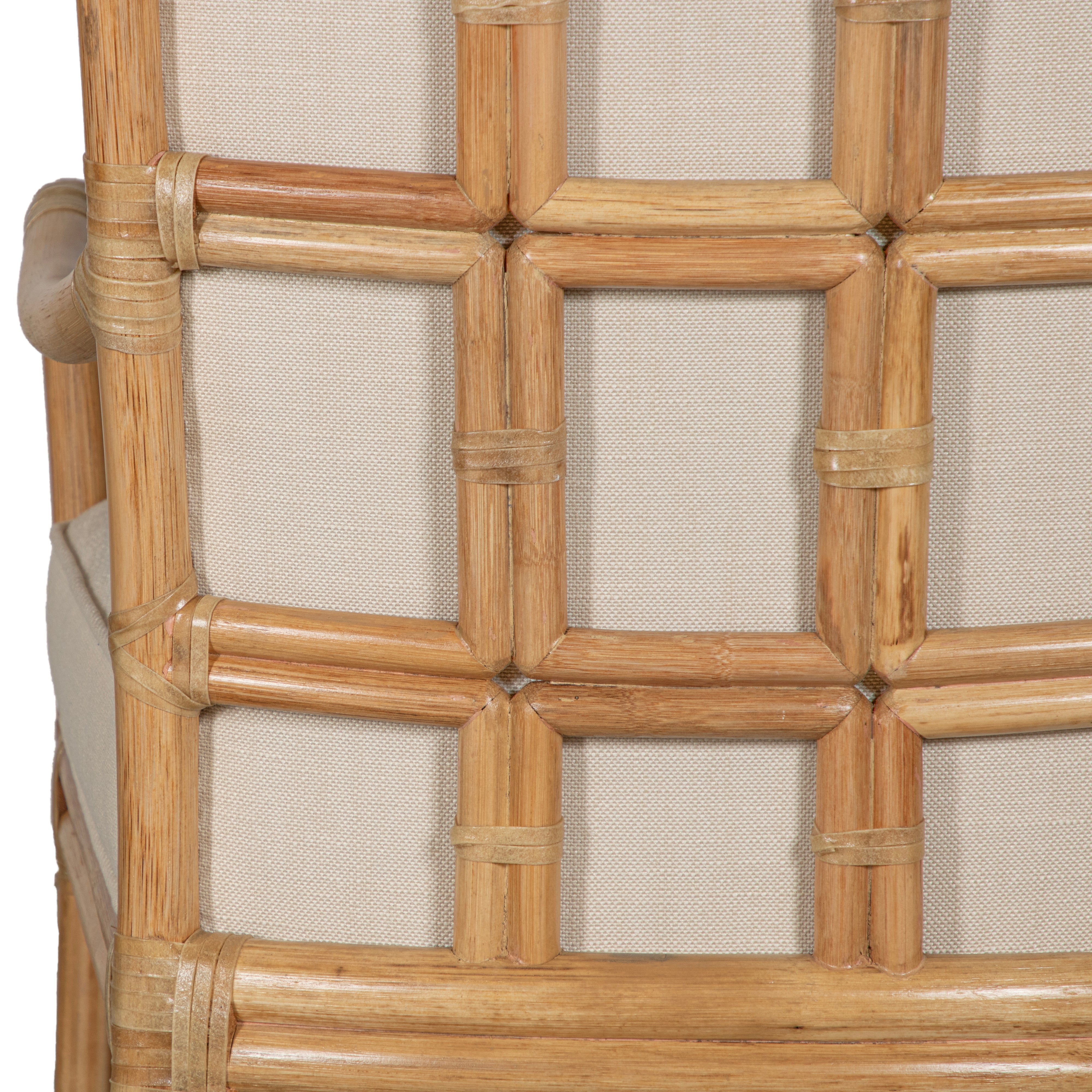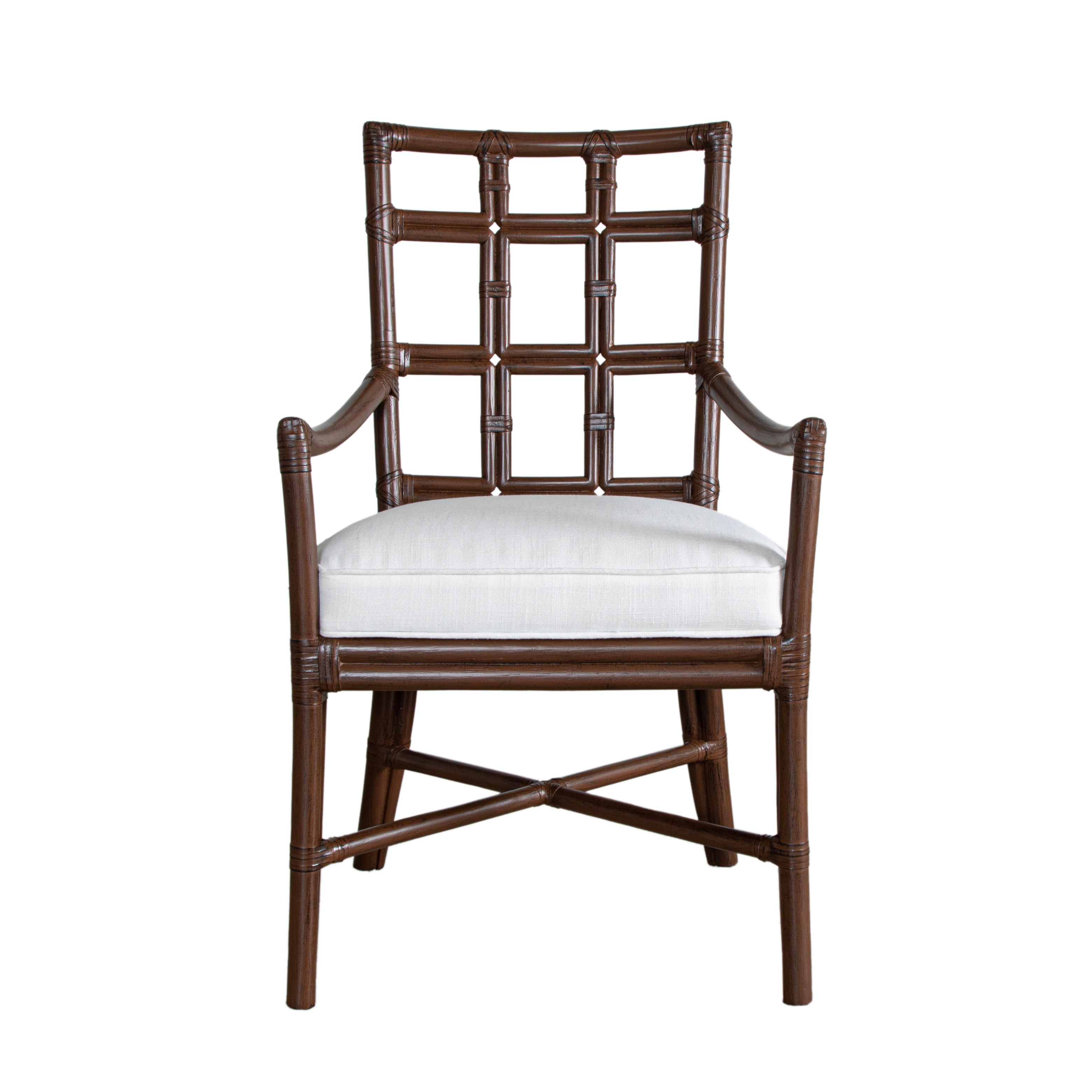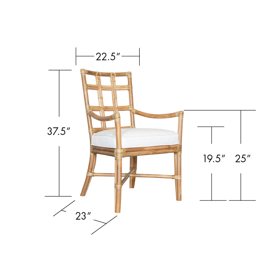 Add a touch of modern elegance to your space with the Seville Armchair. Featuring a stylish square pattern design, this eco-friendly rattan chair is both durable and fashionable. The leather wrapping at all joints adds a unique touch. Customize with a variety of finishes, Sunbrella, InsideOut performance fabric options or your COM.