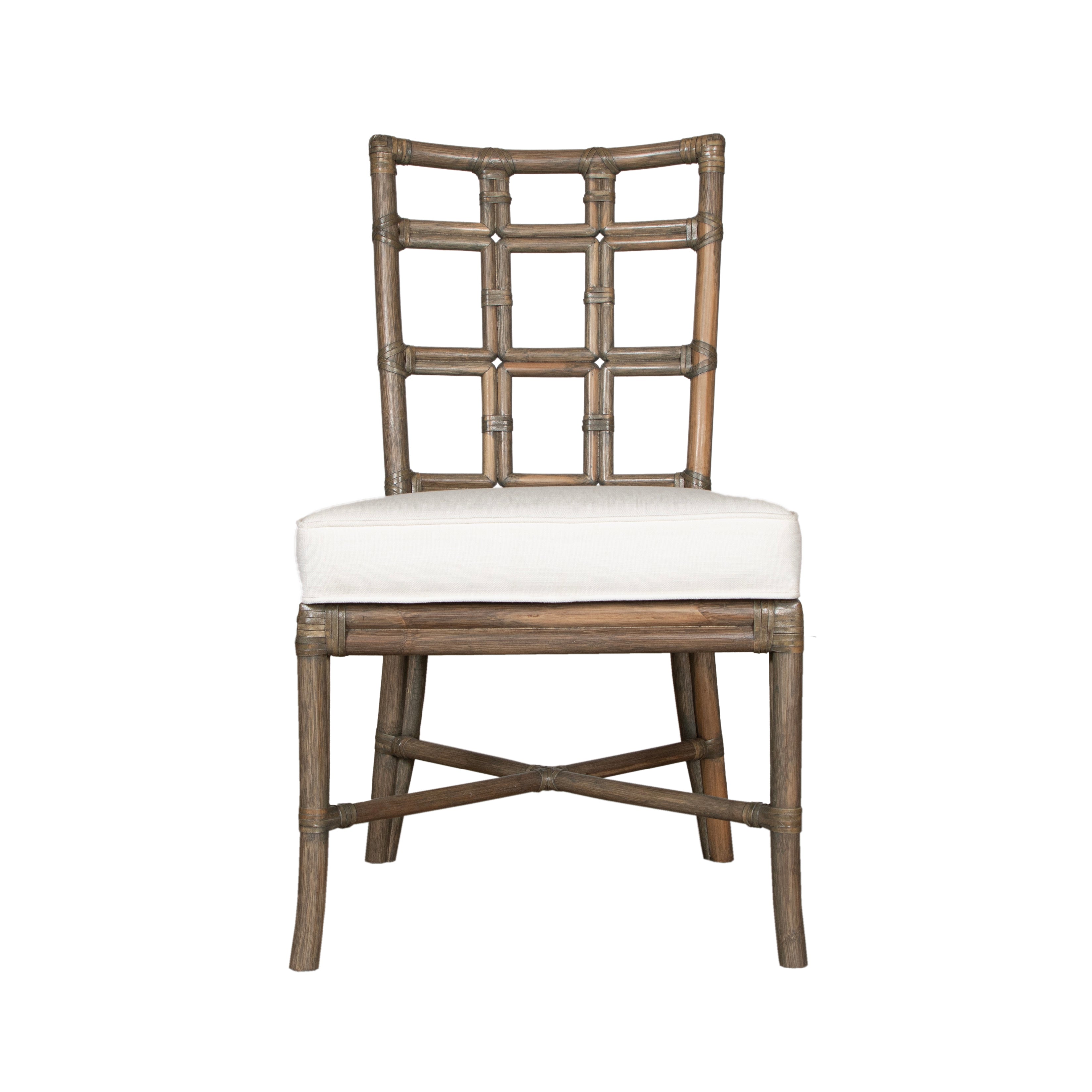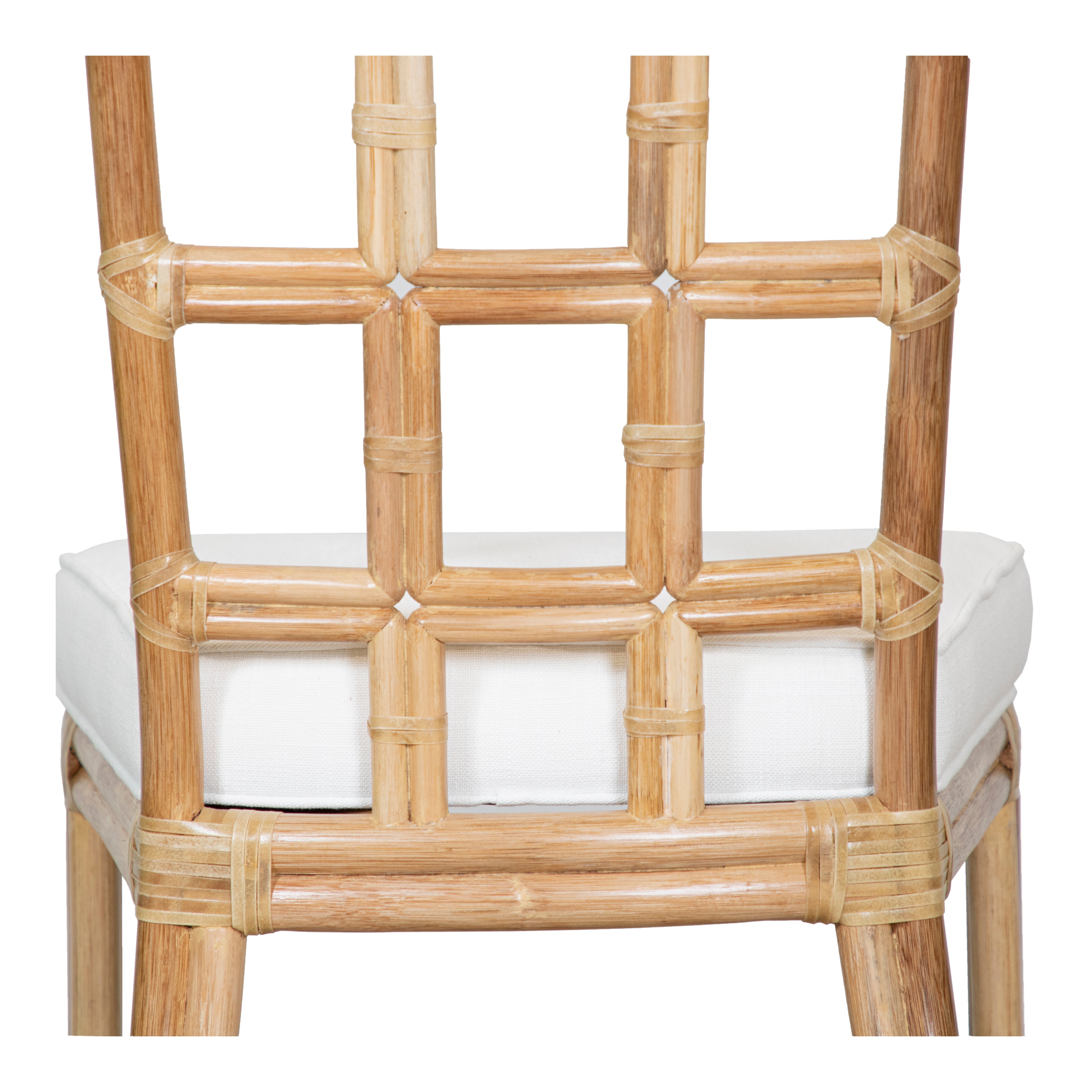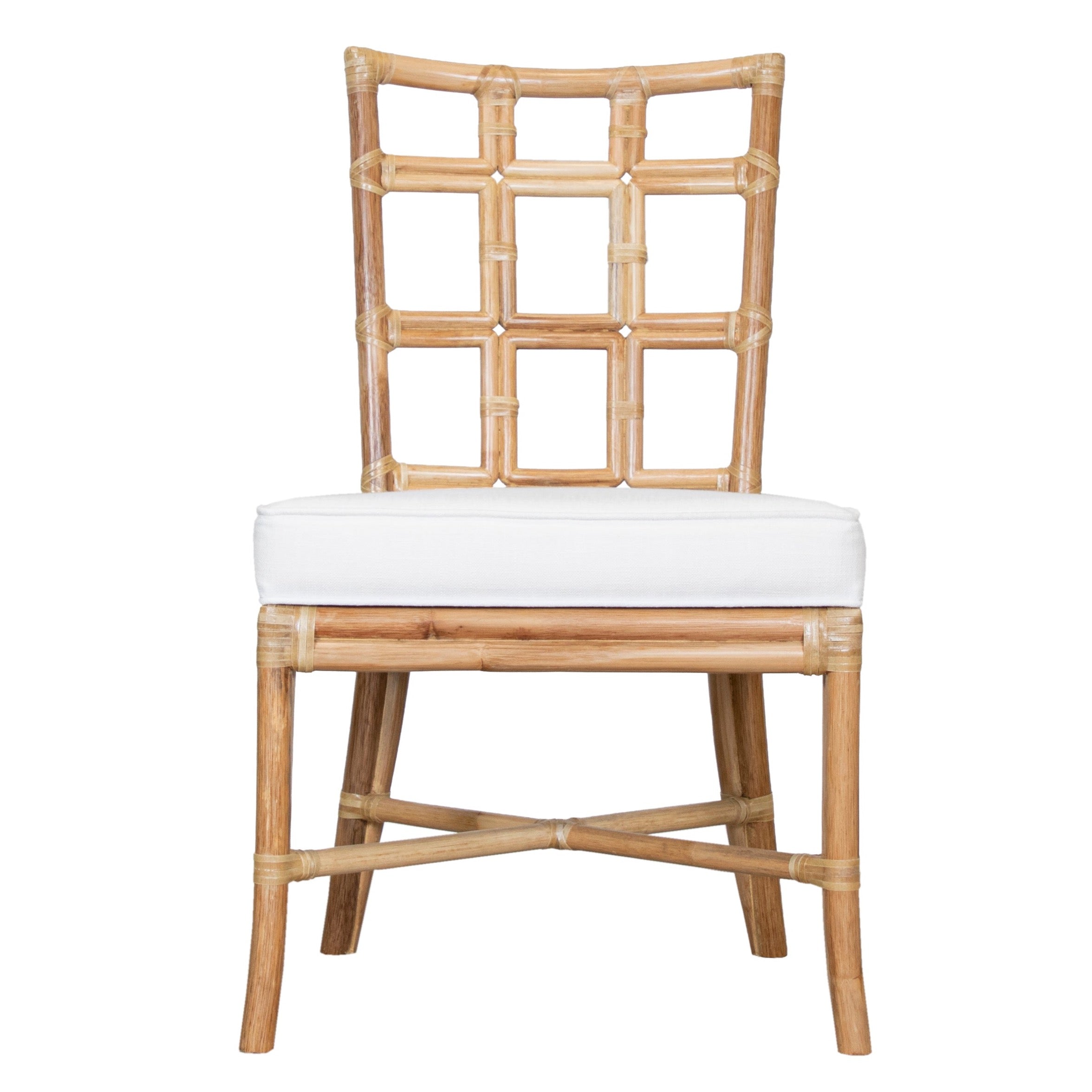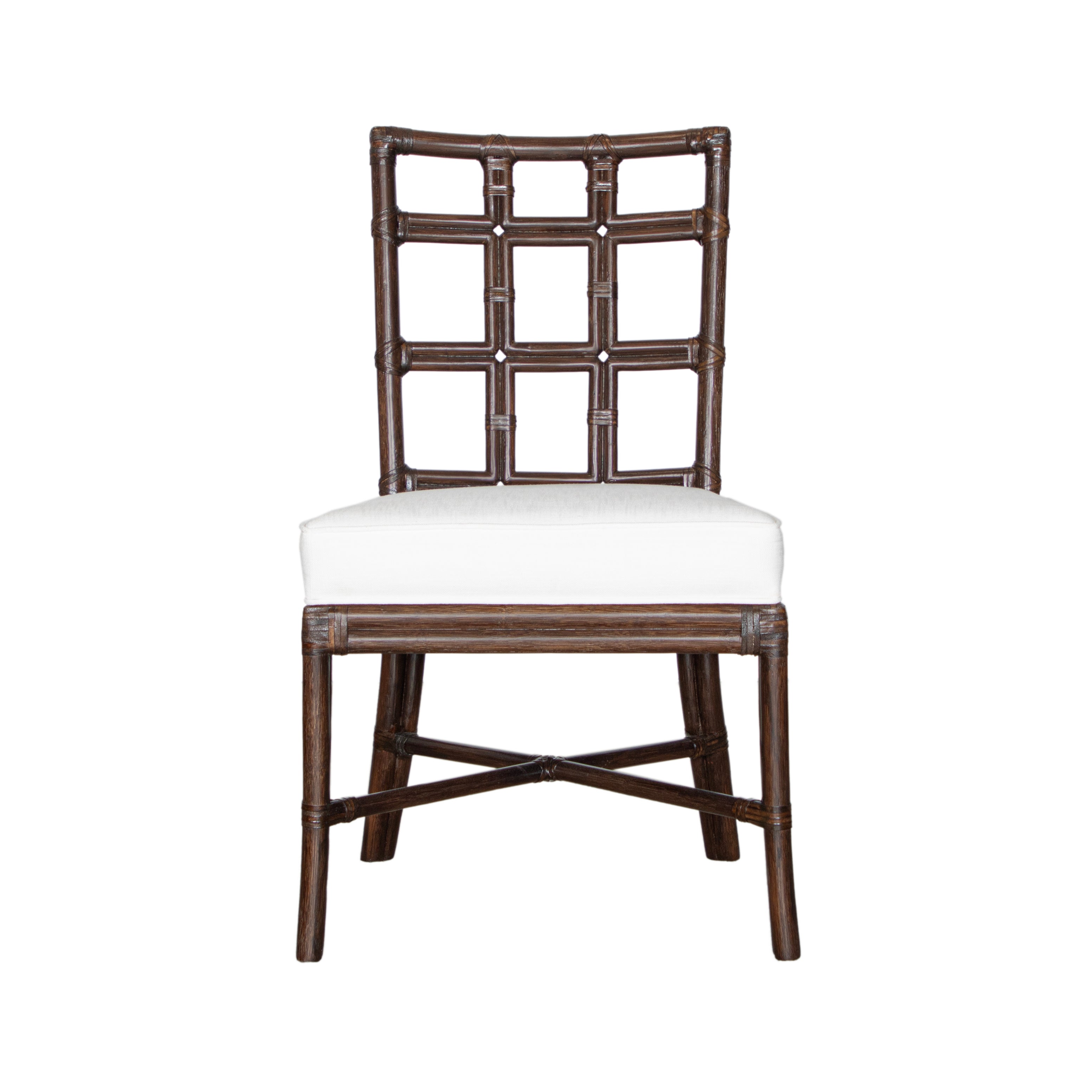 Add a touch of modern elegance to your space with the Seville Side Chair. Featuring a stylish square pattern design, this eco-friendly rattan chair is both durable and fashionable. The leather binding at all joints adds a unique touch. Customize with a variety of finishes, Sunbrella, InsideOut performance fabric options or your COM.