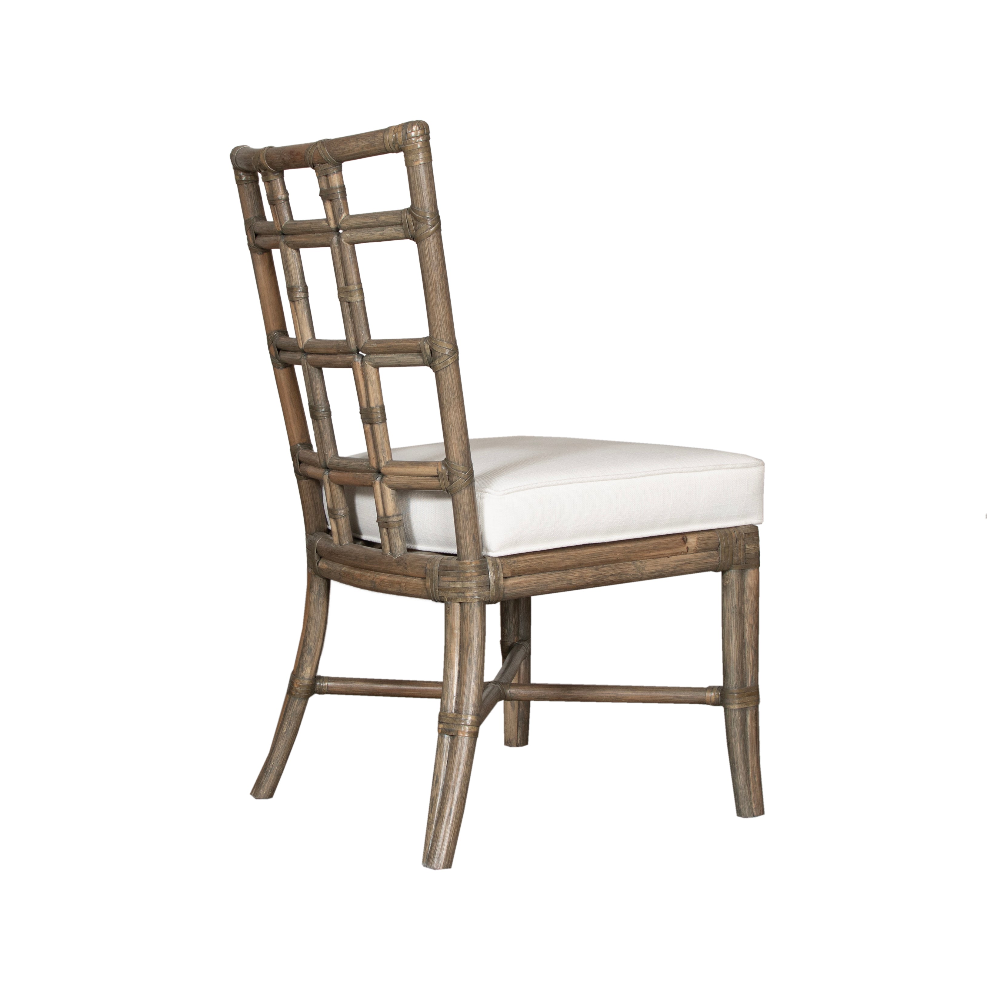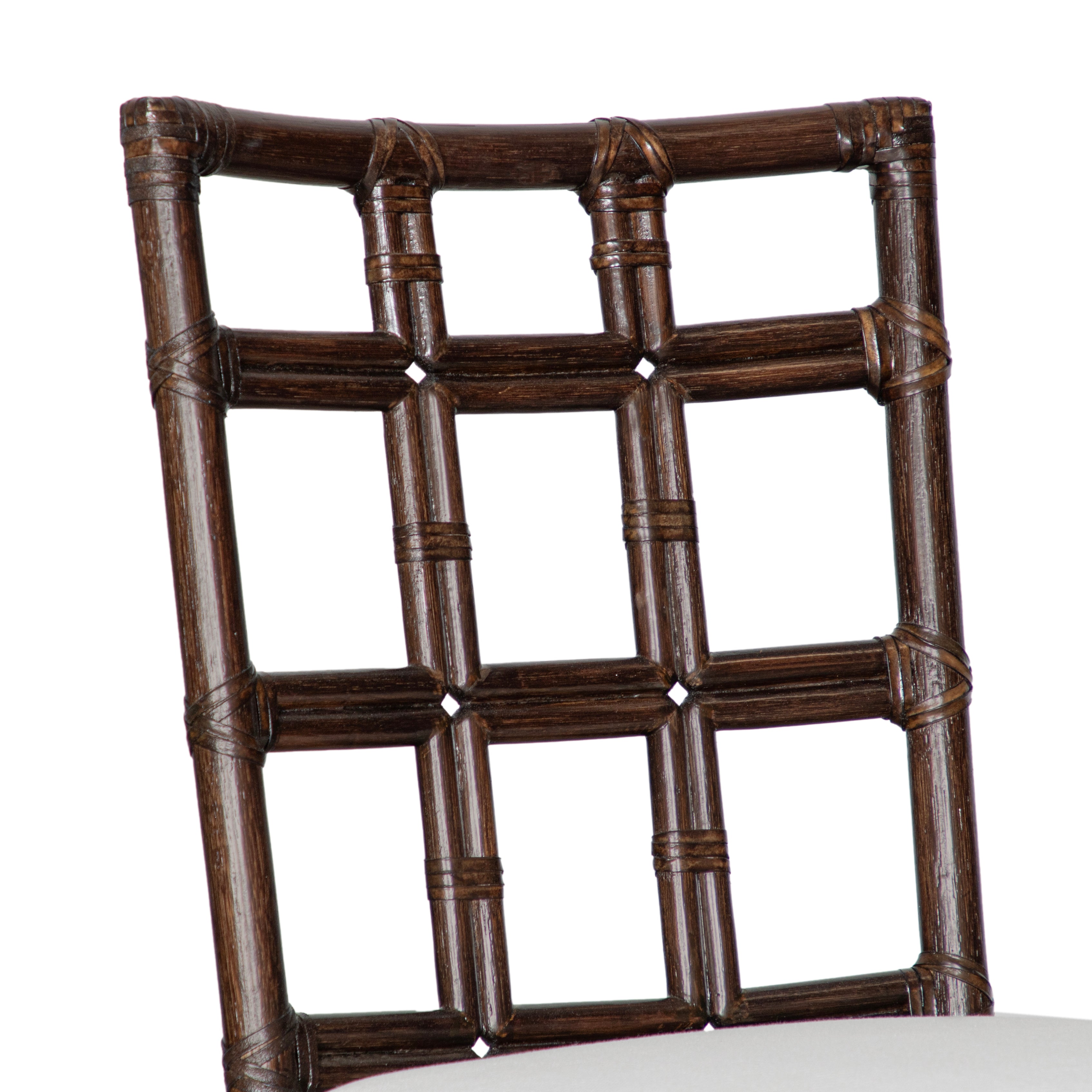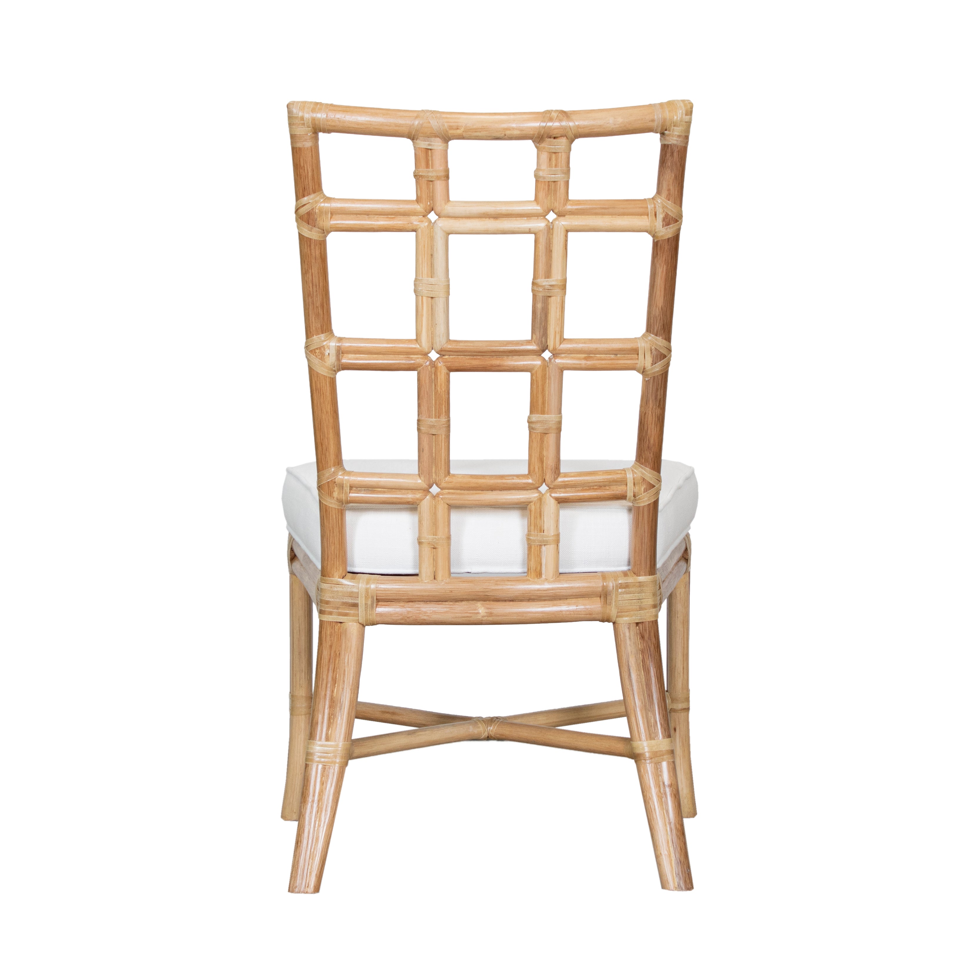 Add a touch of modern elegance to your space with the Seville Side Chair. Featuring a stylish square pattern design, this eco-friendly rattan chair is both durable and fashionable. The leather binding at all joints adds a unique touch. Customize with a variety of finishes, Sunbrella, InsideOut performance fabric options or your COM.