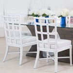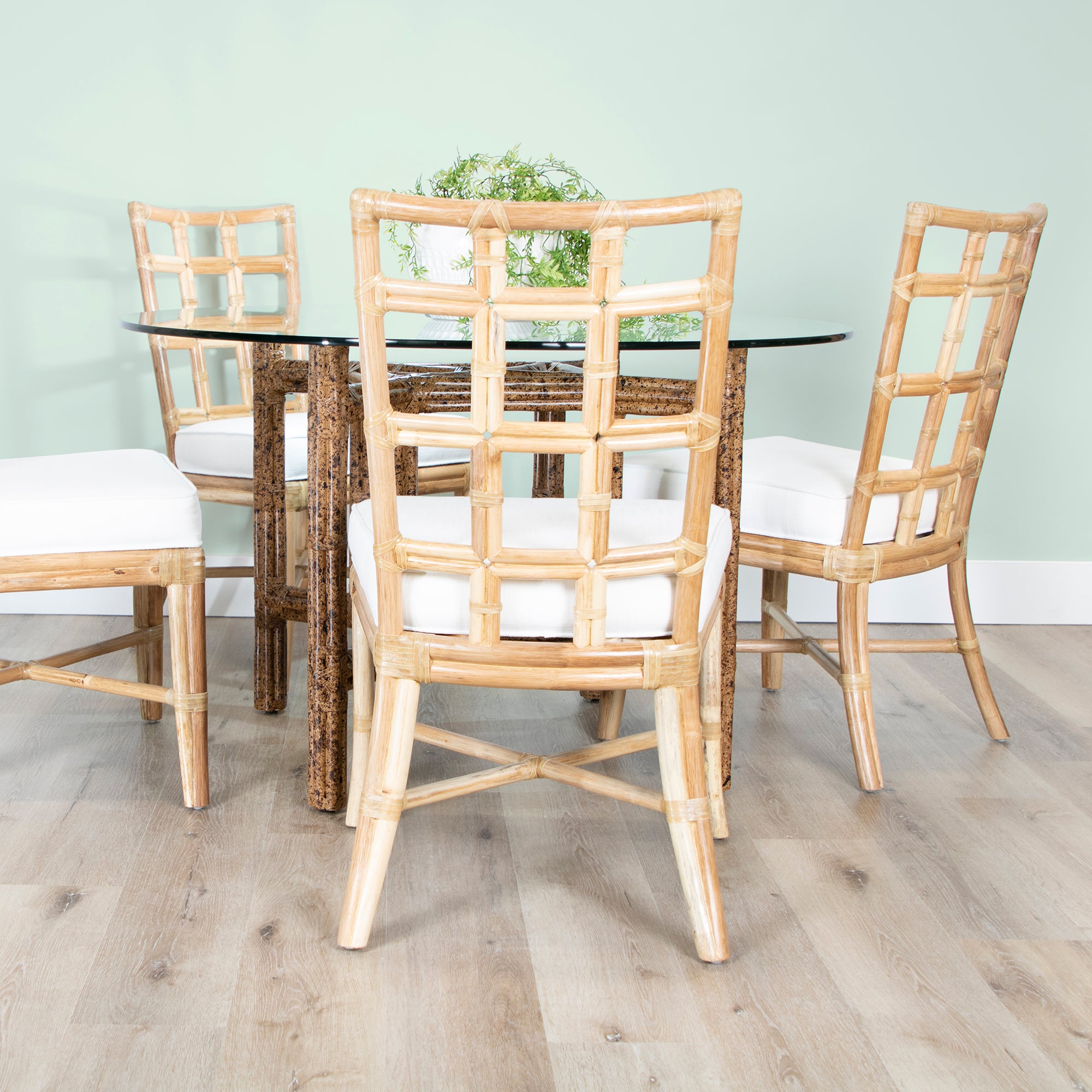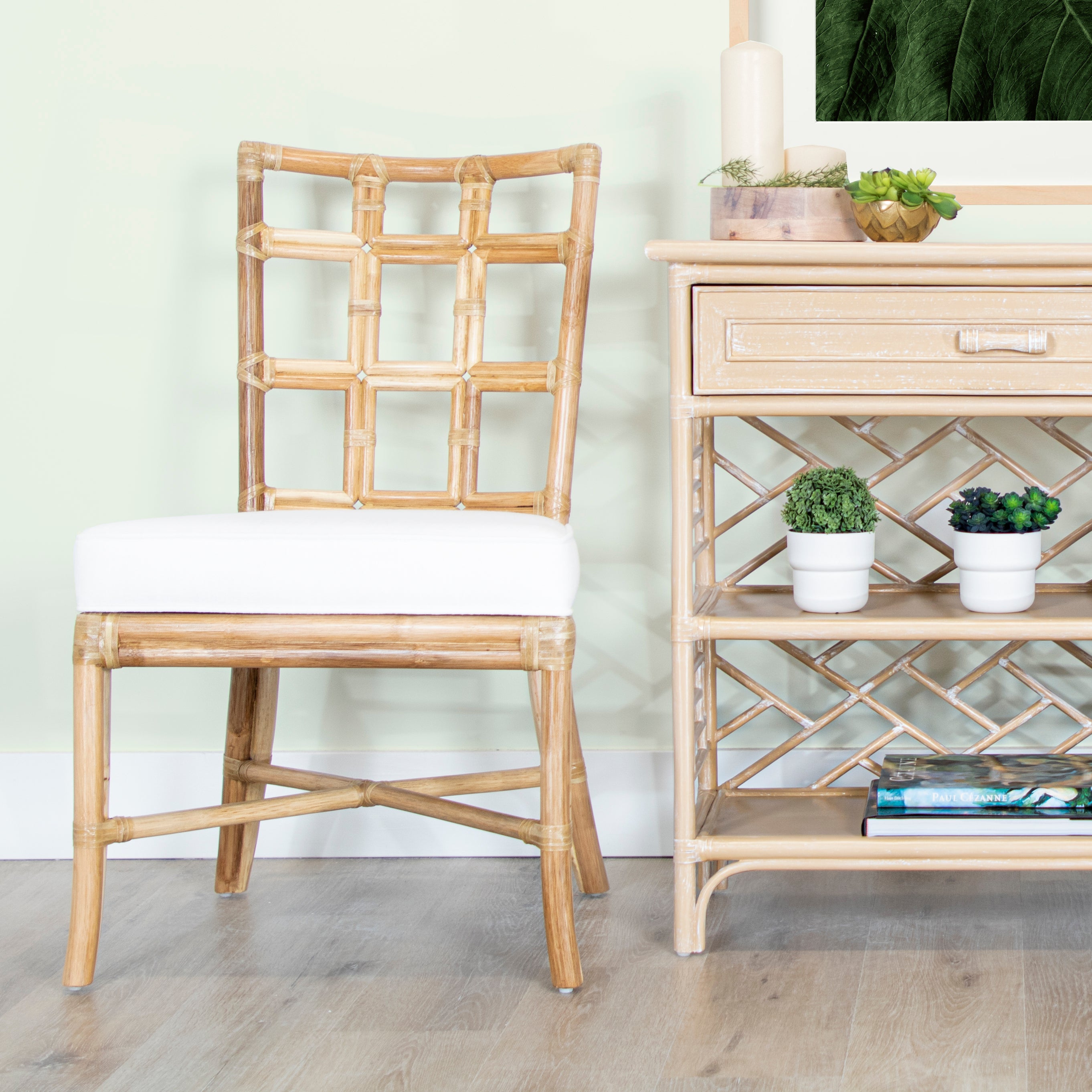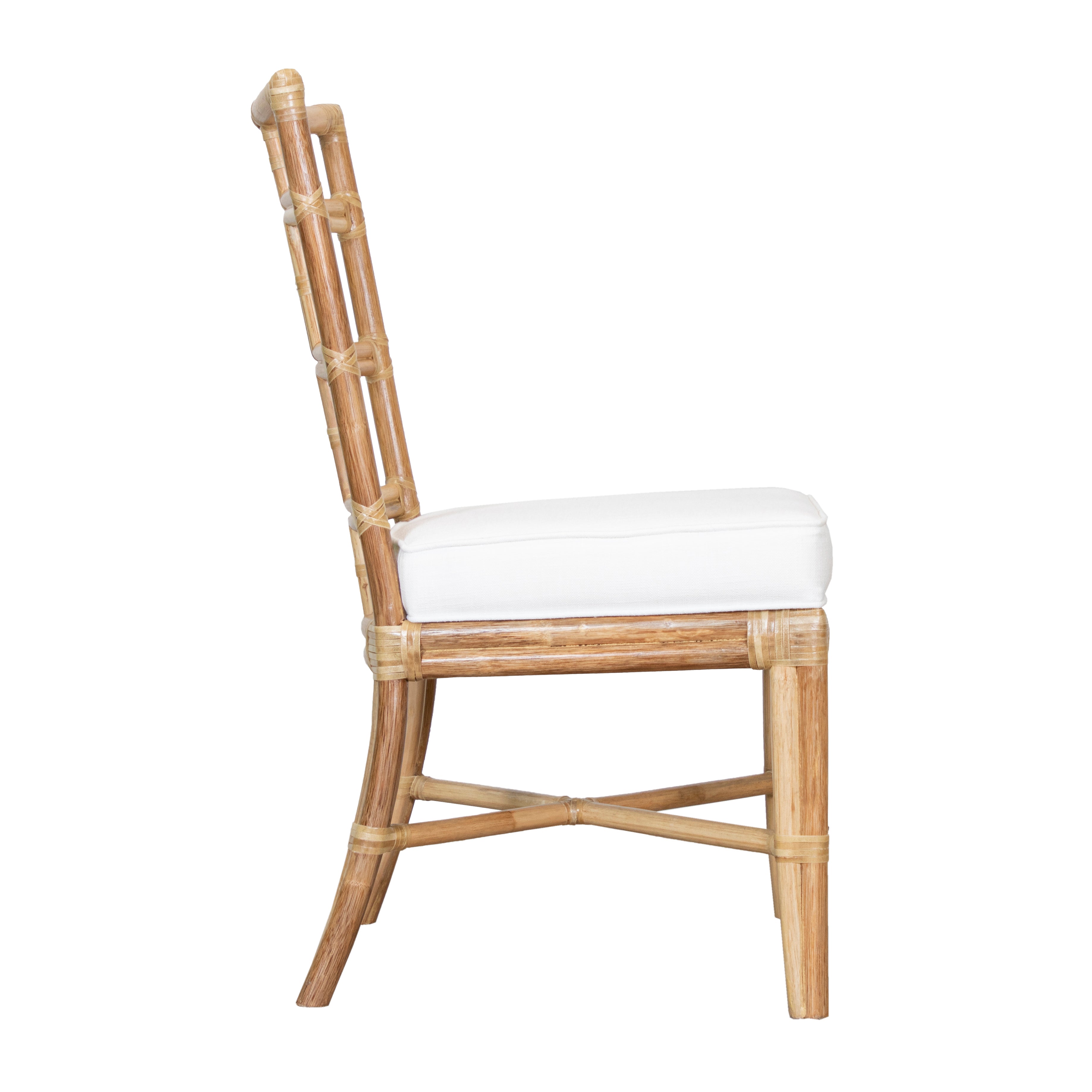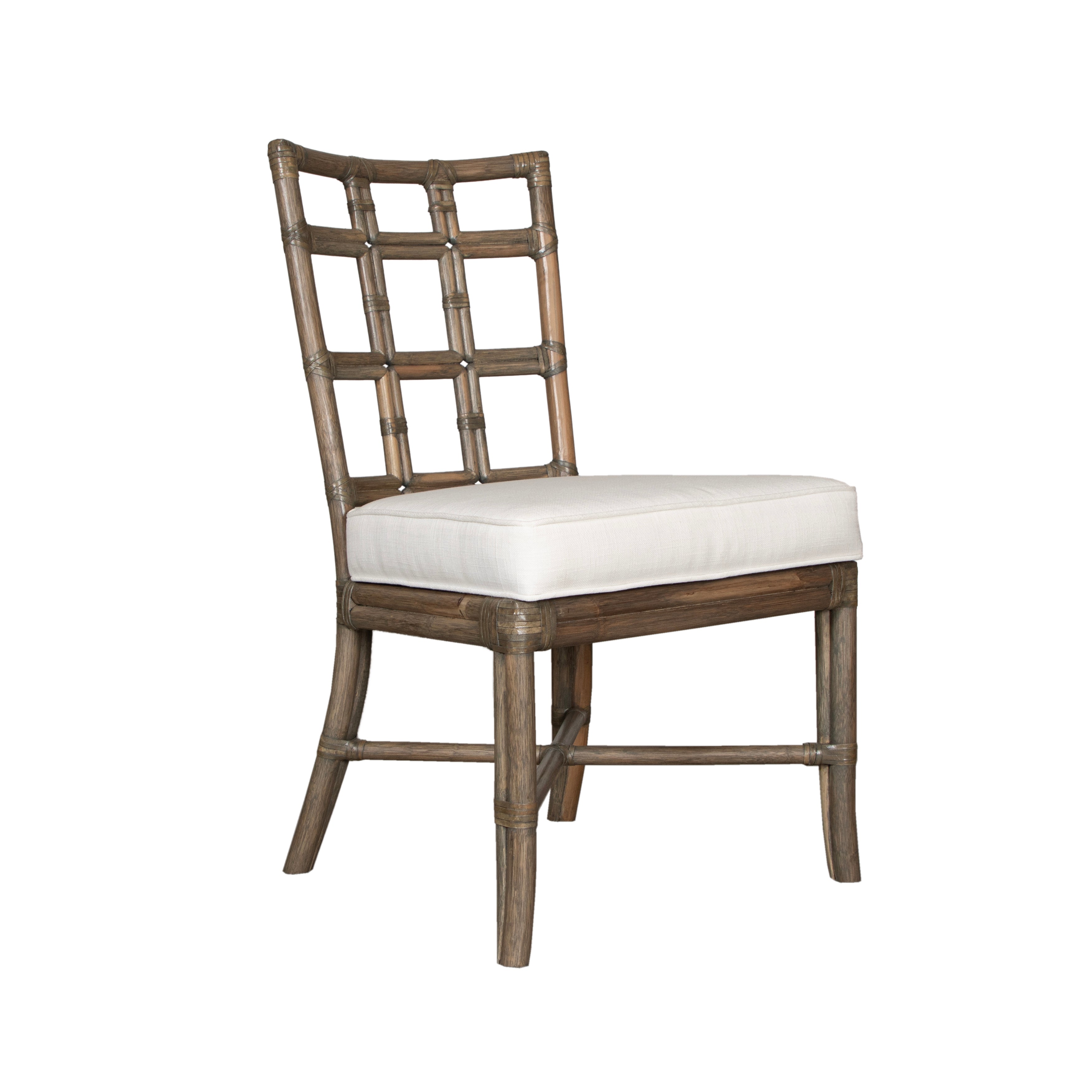 Add a touch of modern elegance to your space with the Seville Side Chair. Featuring a stylish square pattern design, this eco-friendly rattan chair is both durable and fashionable. The leather binding at all joints adds a unique touch. Customize with a variety of finishes, Sunbrella, InsideOut performance fabric options or your COM.