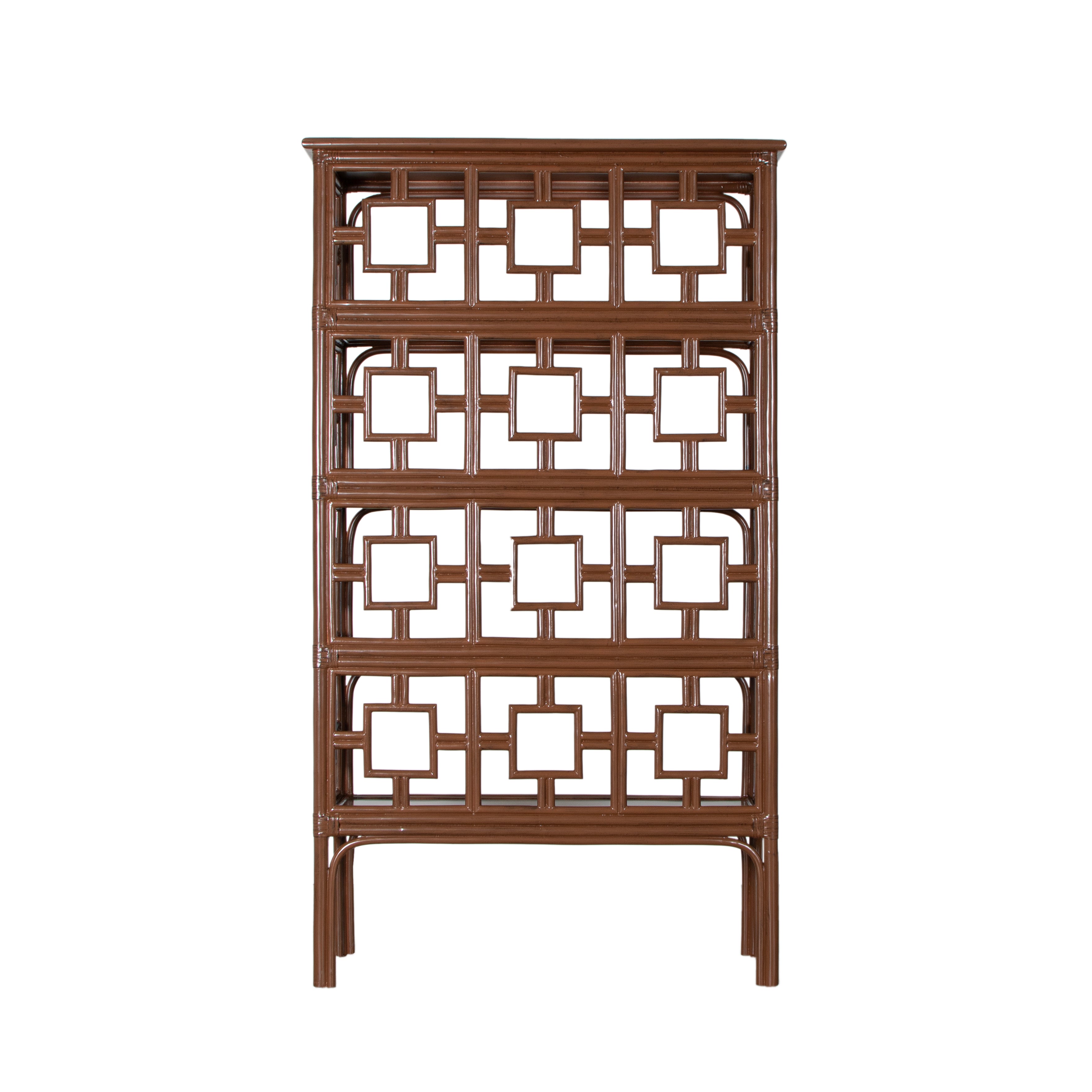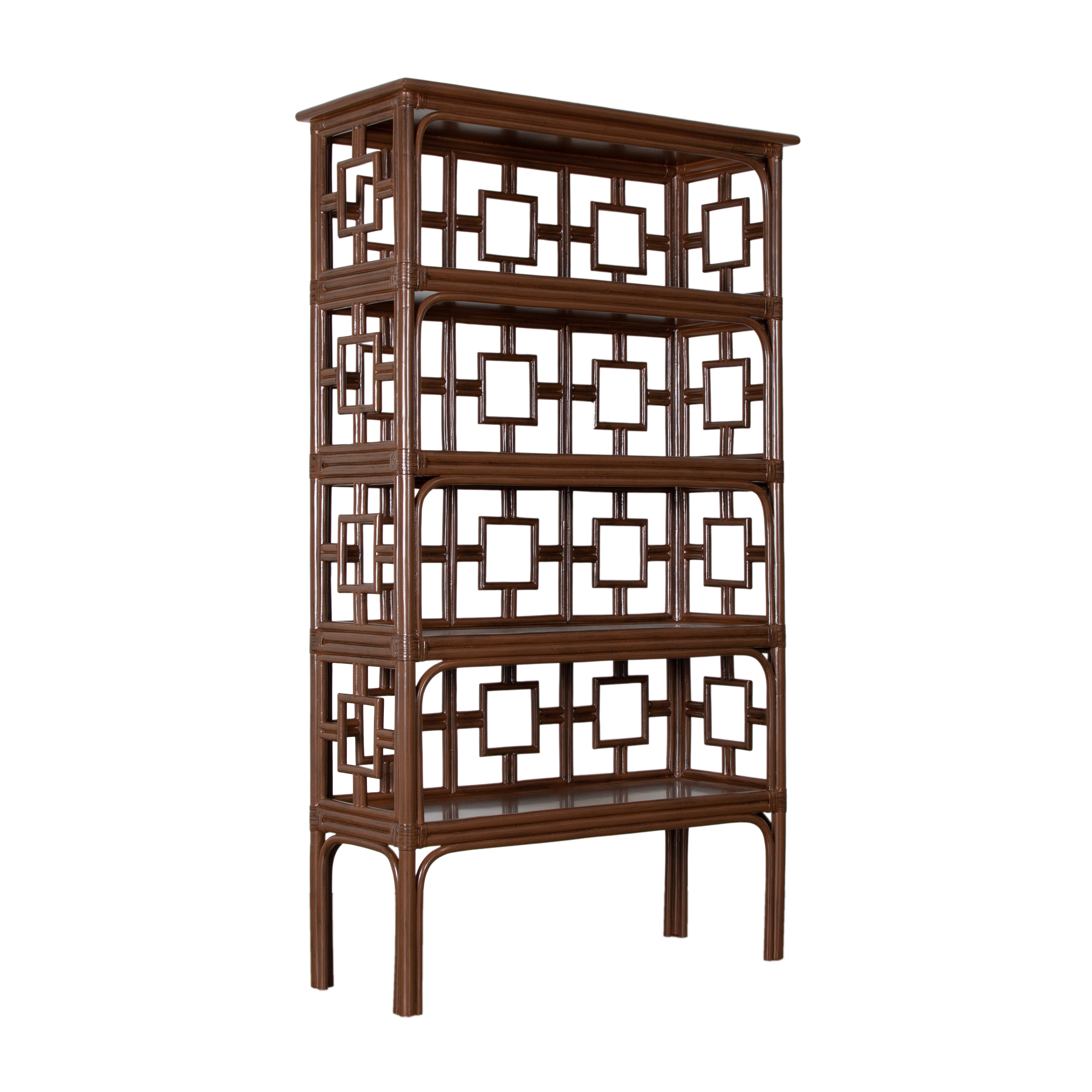 Elevate your space with the stylish Sobe Etagere! Made with a modern rattan frame, this piece marries function, sustainability, and fashion. It features 4 spacious shelves, perfect for displaying your collectibles. With a variety of finishes to choose from, it's the perfect addition to any design project.