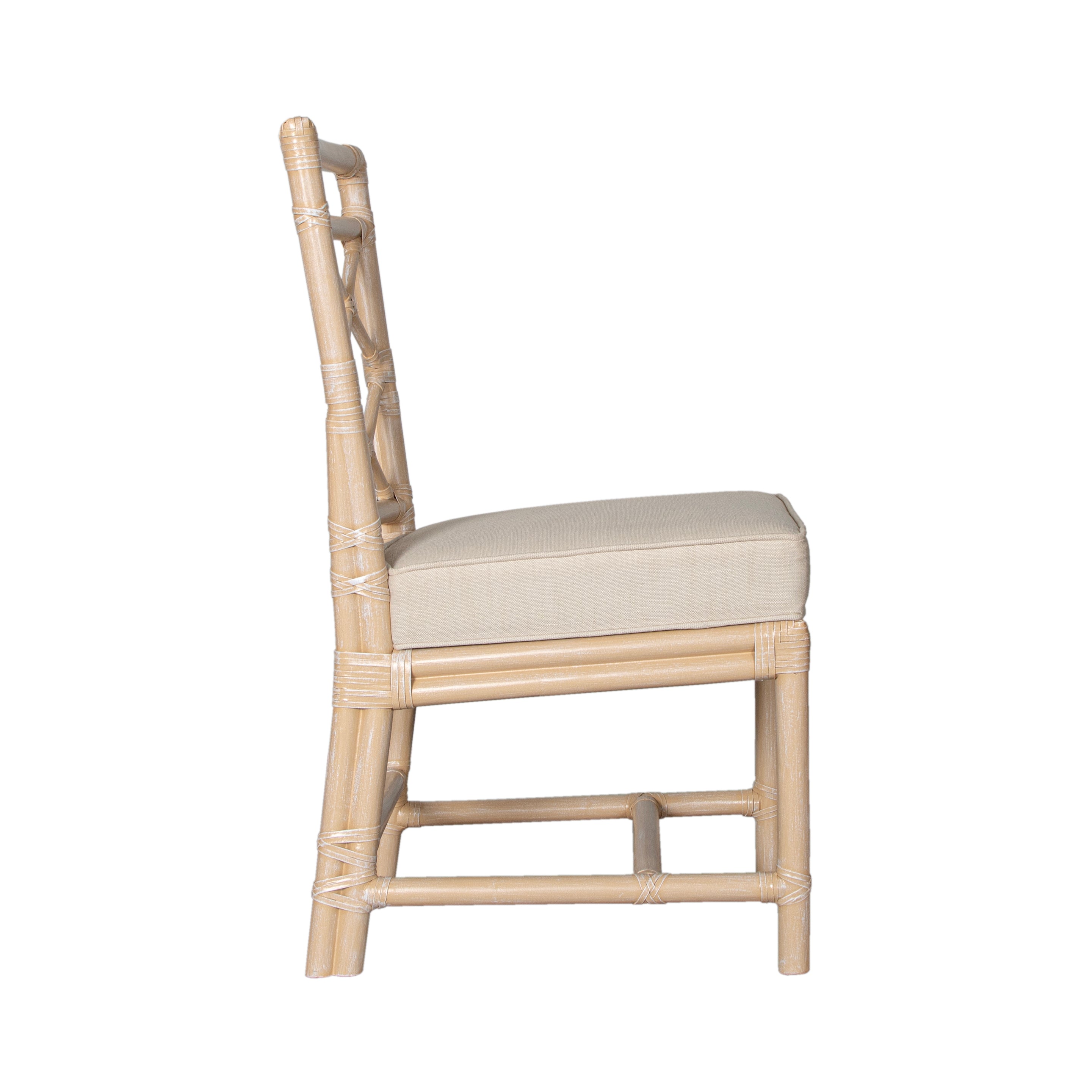 Indulge in the timeless elegance of our X & Diamond Side Chair. With its classic design and an eco-friendly rattan frame available in a variety of exquisite finishes, it adds sophistication to any space. Customizable with a tight back seat and a choice of COM or Sunbrella and InsideOut performance fabrics.