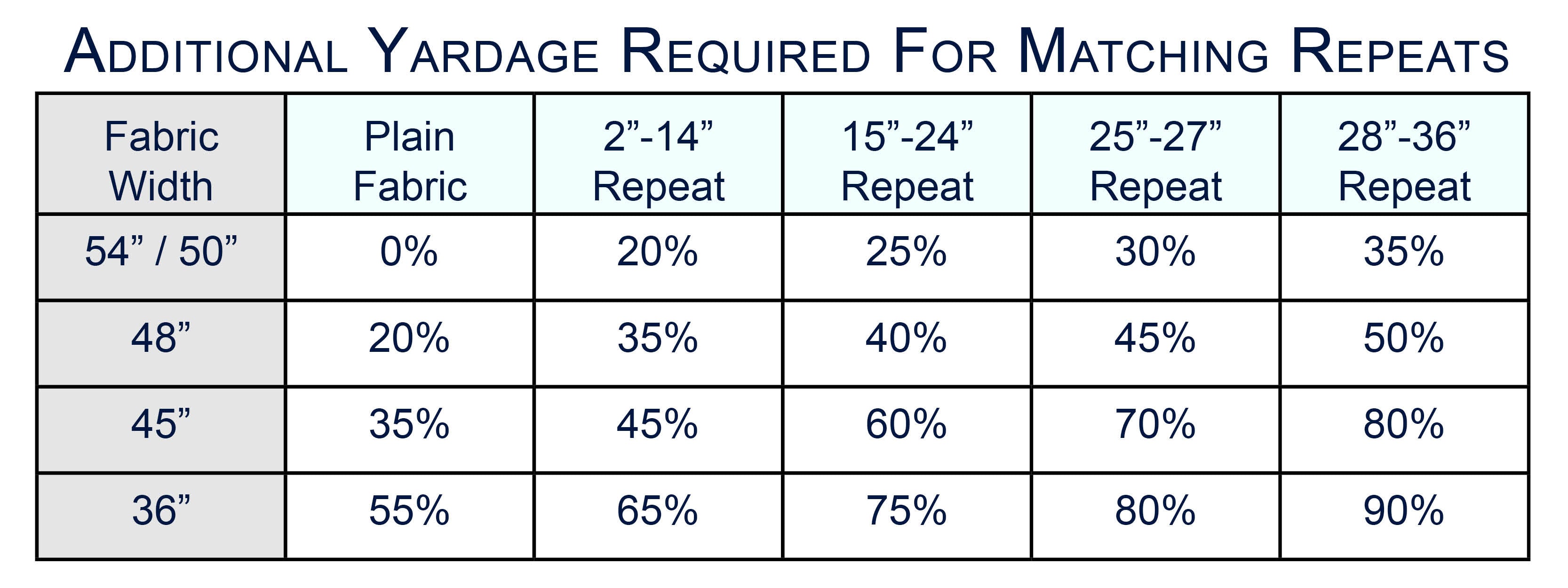 The chart will also allow you to compute the additional yardage required for matching repeats.
